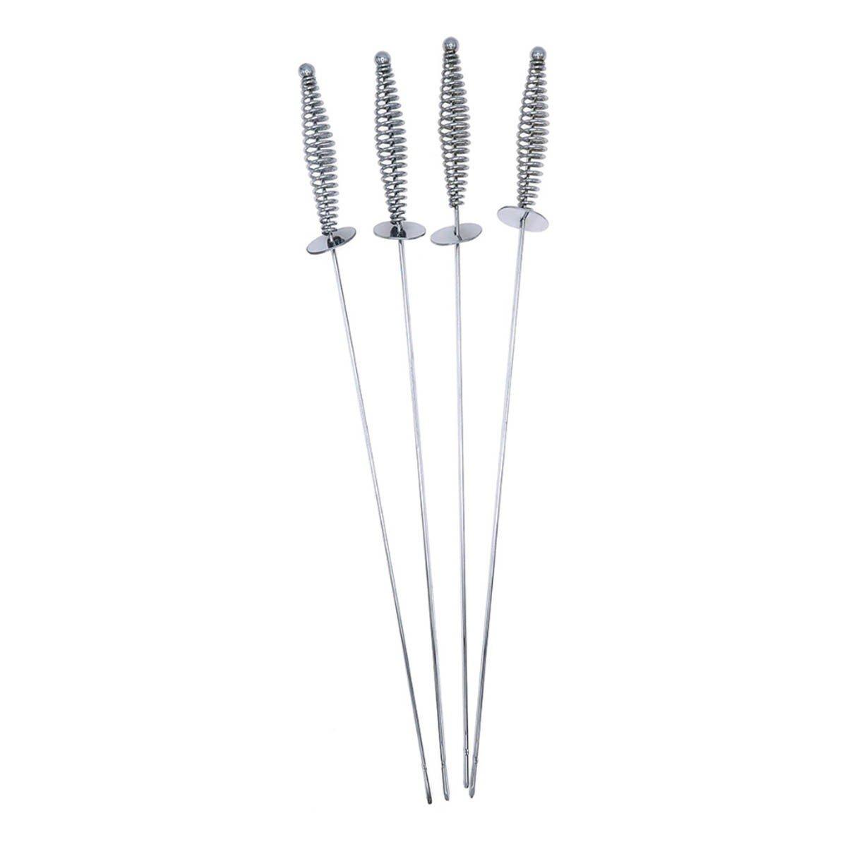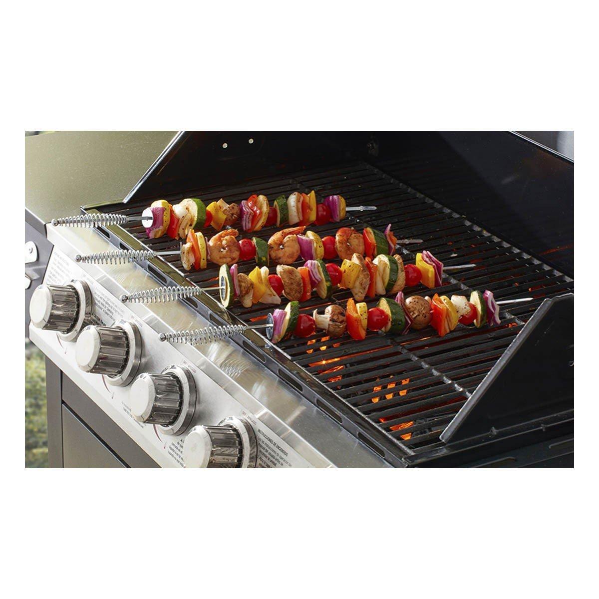 These Spiral Handle skewers are great for kabobs, meats or vegetables. Use them how you want! The Easy Grip, Cool to touch Spiral Handles protect you from heat, while providing a secure handle to grab. Featuring Flat body that holds food secure, push bars for easy food removal, and constructed out of durable metal.