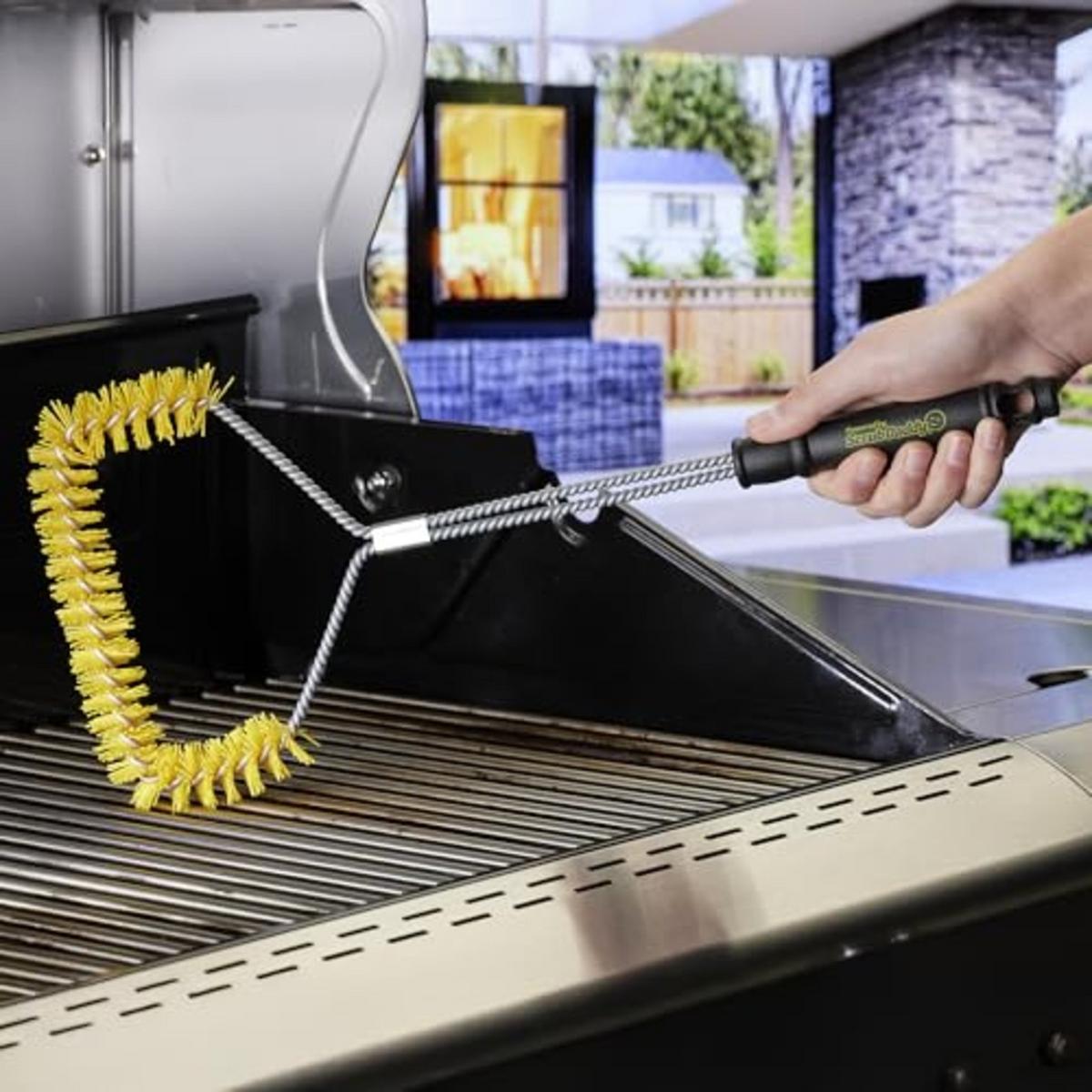 Keep your grill grates spotless with the Mr. Bar‑B‑Q Scrub Daddy U-Shaped Grill Brush. Its durable nylon bristles safely lift burnt-on food from cool grill surfaces without scratching, while the wide U-shaped head scrubs both tops and sides of grates at once.