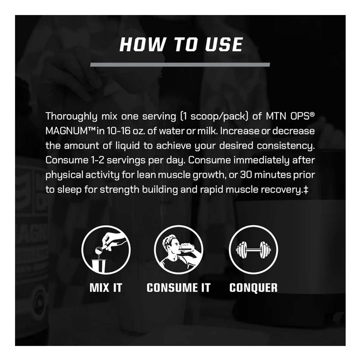 MTN OPS MAGNUM™ provides a key blend of proteins to help you get fit and stay fit. MAGNUM™ Power Protein feeds muscles to help fuel the growth of lean muscle. This delicious blend of proteins gives needed nutrition to help you meet your protein goals.