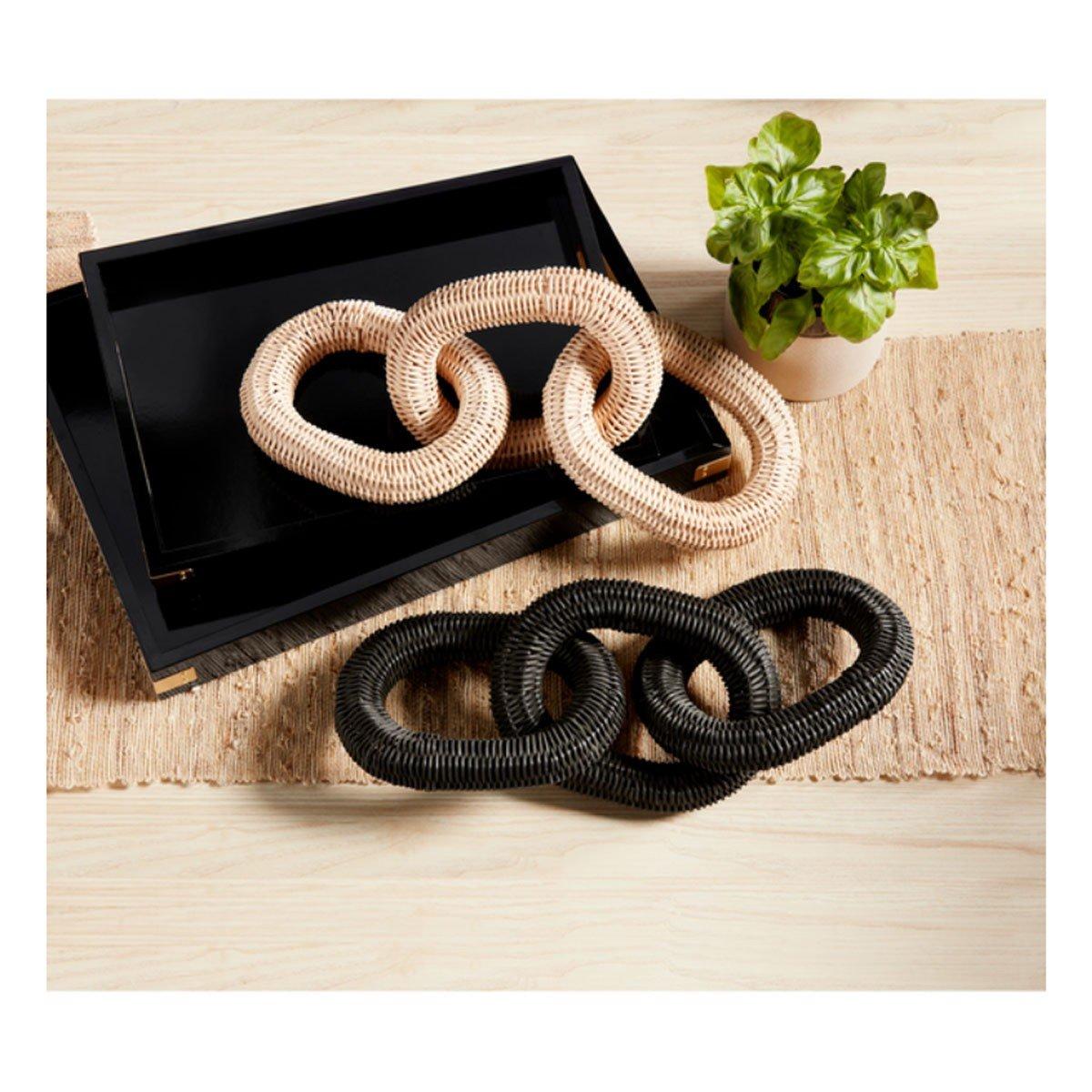 Enhance the aesthetic appeal of your home or office with the Rattan Links. Crafted from high-quality rattan, these decorative links are built to last. The sleek black color adds a modern and sophisticated touch to any decor. Whether used alone or paired with other rattan decor, these links are sure to elevate the style of your space. Versatile for both indoor and outdoor use, these decorative rattan links are a must-have addition to any setting. Elevate your decor with the stylish Rattan Links.