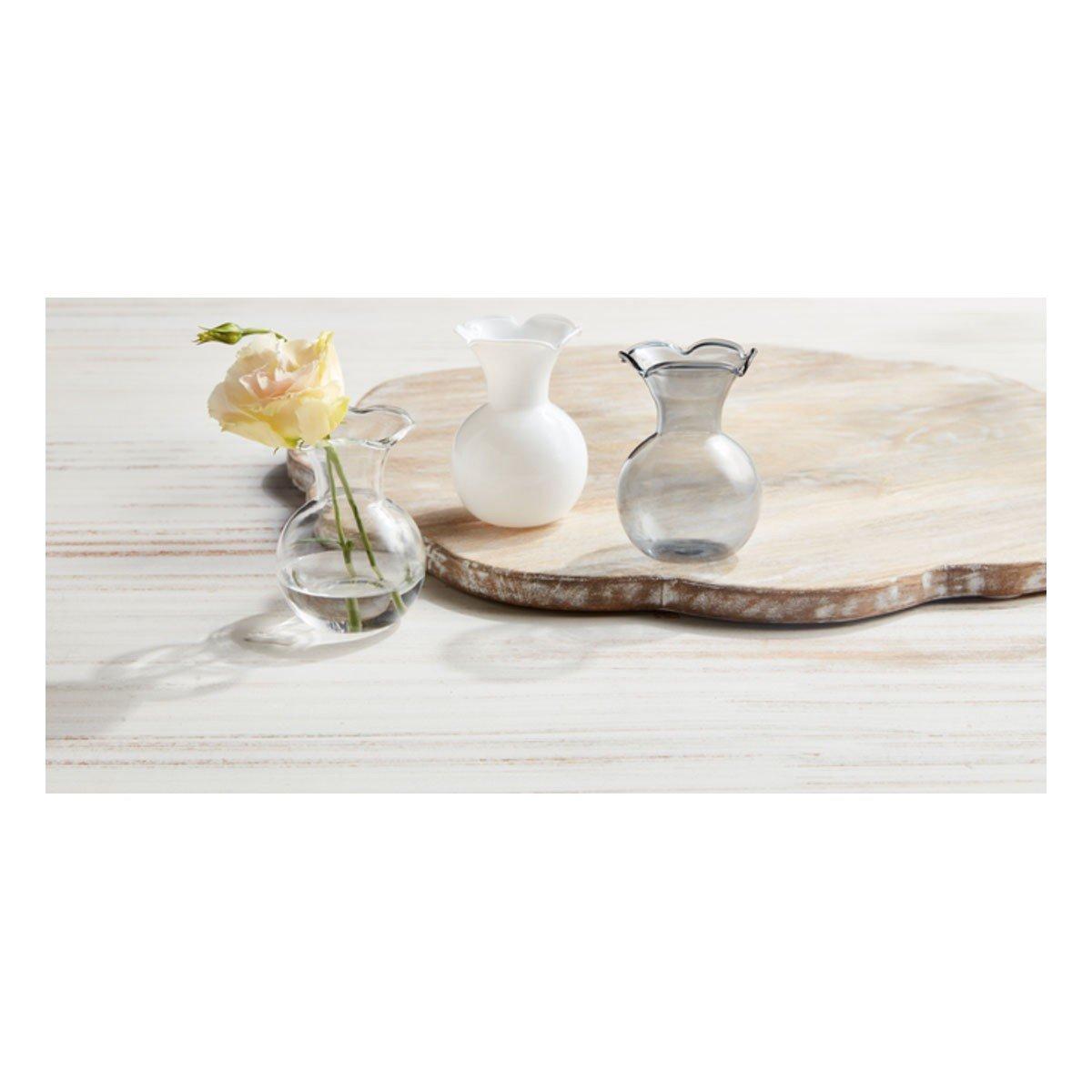 Enhance your home decor with this exquisite tinted glass bud vase, designed to add a touch of elegance to any space. Crafted with precision, this vase features a beautifully fluted ruffle rim that adds a unique and sophisticated flair. Its compact size, measuring 4 inches in height and 3 1/4 inches in diameter, makes it perfect for showcasing a single bloom or a small bouquet of your favorite flowers. The tinted glass not only provides a subtle hint of color but also complements a variety of interior styles, from modern to classic. Whether placed on a windowsill, mantel, or dining table, this bud vase is sure to become a charming focal point in your home.