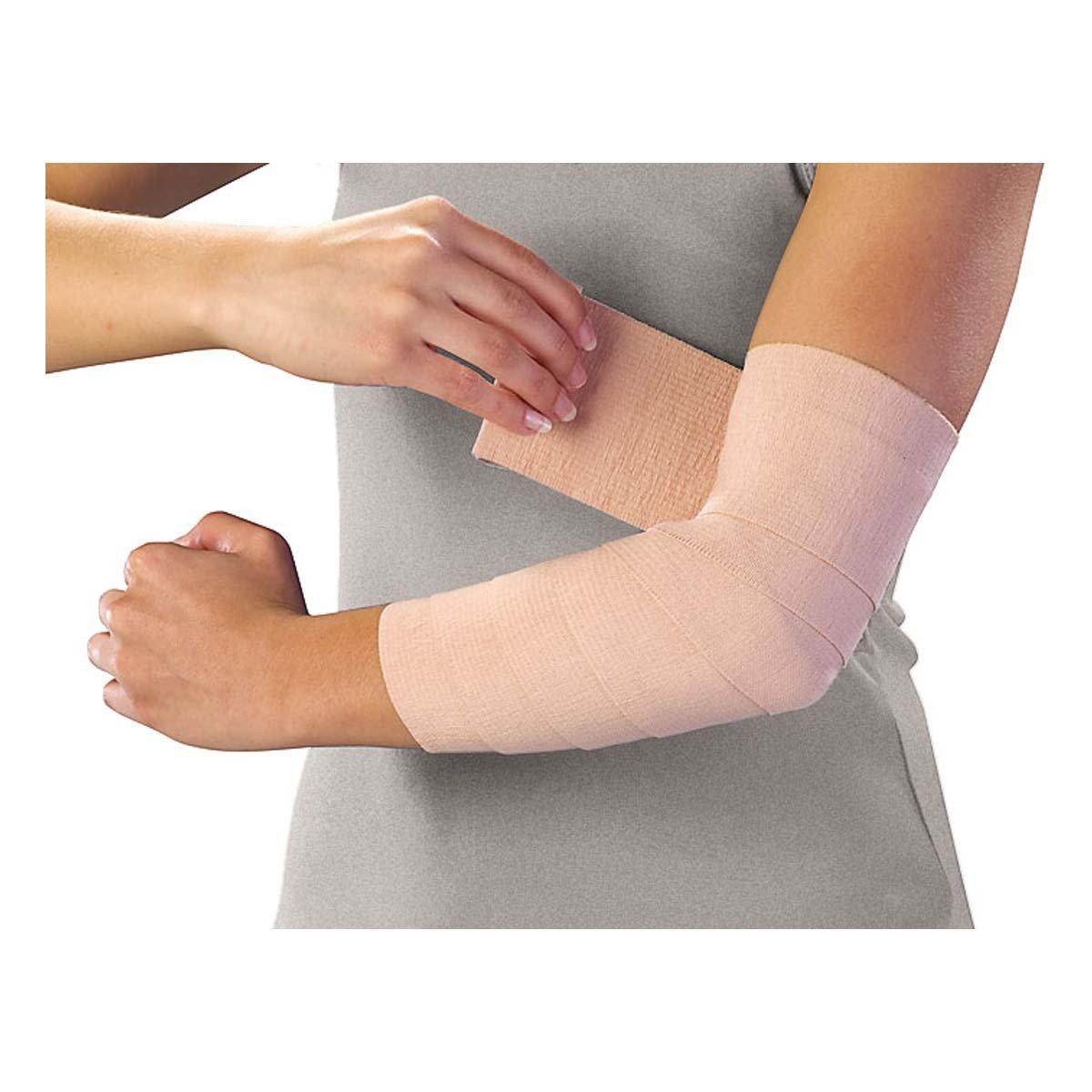 This long-lasting washable bandage provides firm support and compression to injured areas. Ideal for holding first aid dressings or cold packs in place. High quality cotton and elastic bandage retains elasticity after repeated use and washings. Clips are included