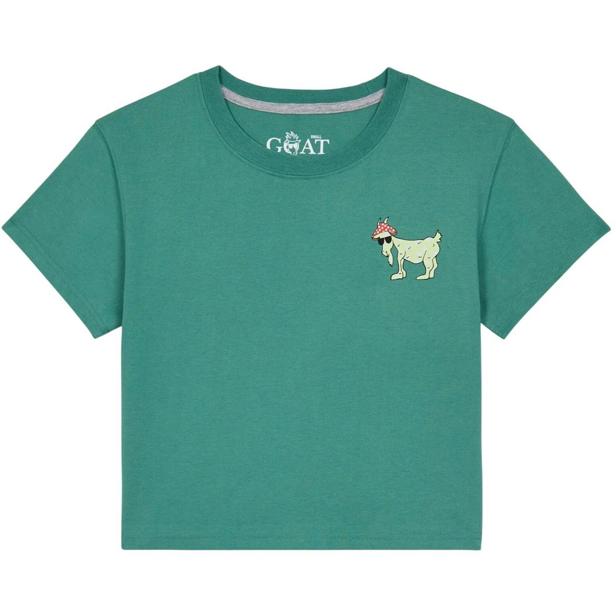 The Mushroom Crop Top is a bright burst of GOAT USA magic, featuring Mushroom Chuck in a dreamy garden of glowing greatness. With playful florals, oversized mushrooms, and a glow-in-the-dark finish, this tee is made to stand out wherever the day (or night) takes you. Soft, comfy, and full of personality—this crop top proves that greatness can grow in the most unexpected places.