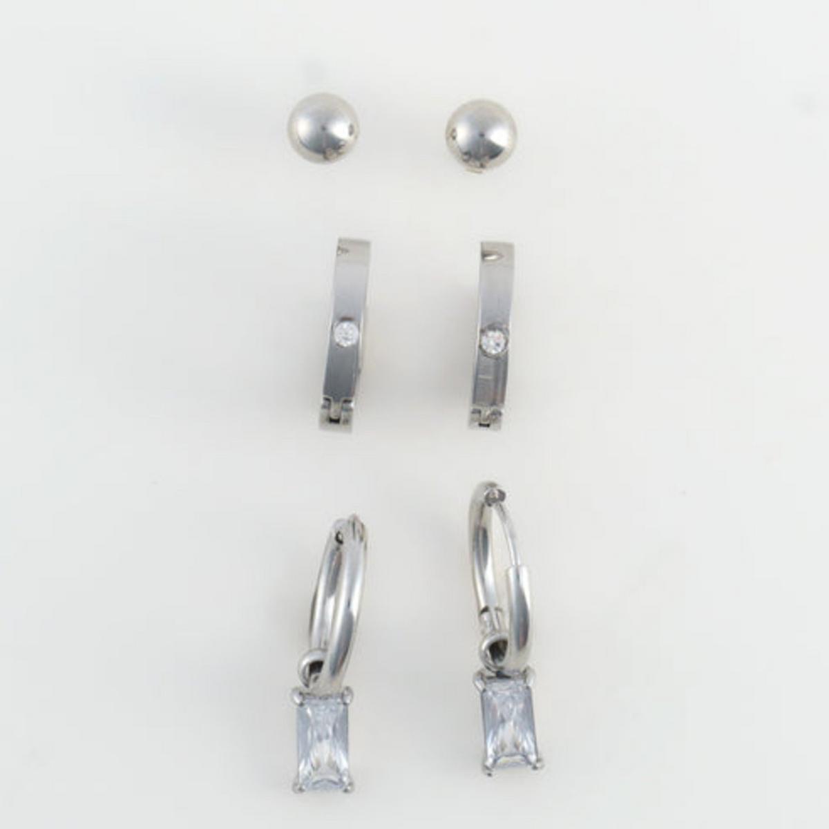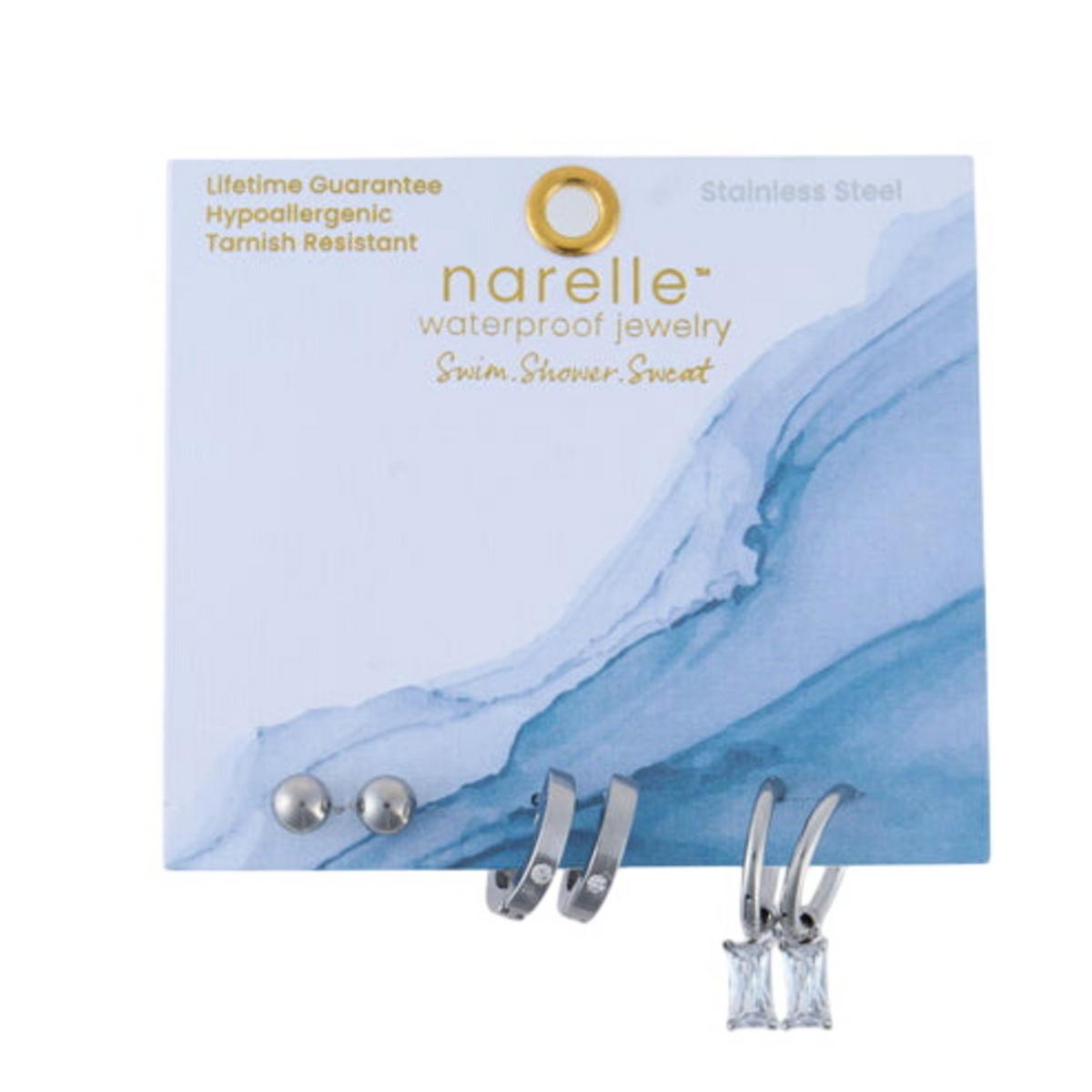 Chic and understated, the Narelle Waterproof Charm Hoop Earring Trio offers three pairs of earrings in trendy hoop and post designs, all in a classic silver. Make a statement with the Charm Hoop, or keep it simple with the post, the style options are endless with this versatile set! Waterproof , stainless steel plated and made with a specialized PVD technique to withstand the rigors of life, from swimming and showering to sweating through your most intense workouts, all without ever losing its shine.