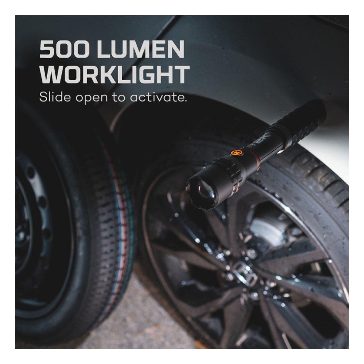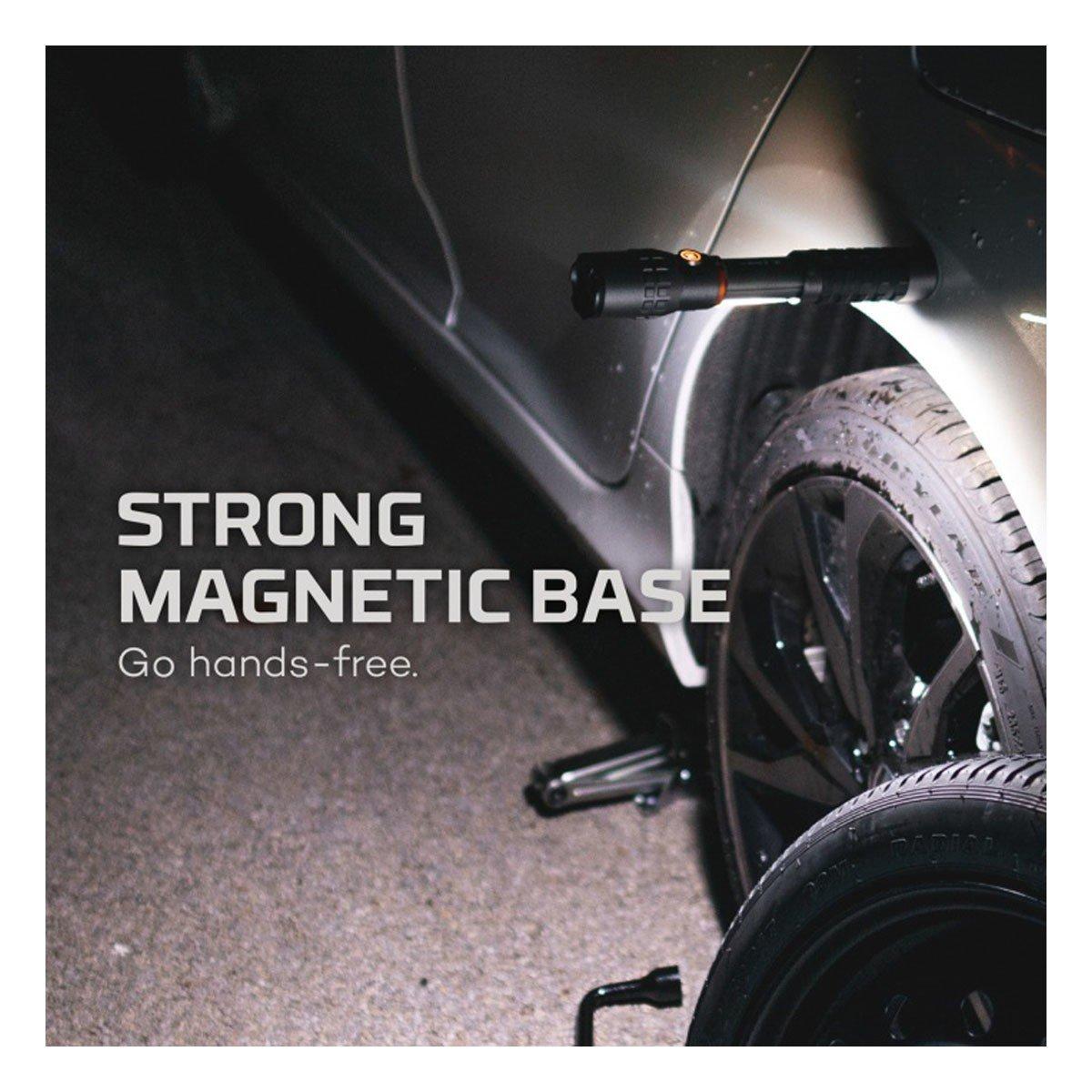 This LED flashlight and work light throws light up to 1,300 ft away, has a powerful magnetic and ergonomic rubberized base, and is impact resistant, making it adaptable for any job. Whether you work on a construction job site or need a reliable LED flashlight for fishing, hunting, camping, and more, the SLYDE KING 2K can handle anything you throw at it.