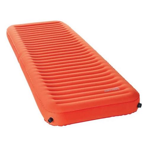 On the outside, the NeoLoftâs surface is made of a plush stretch knit fabric (the NeoLoft is the first ever air pad to be made with stretch knit). Stretch knit is a base layer-like fabric with multi-directional elasticity and is FAR softer to the touch than the nylons typically used to make backpacking pads. Its stretch properties improve the NeoLoftâs contouring support and help to minimize pressure points by locally conforming to the shape of your body. On the inside is the ContourCore Matrixâąâthe epicenter of the NeoLoftâs backcountry-ready specs. It efficiently insulates by minimizing convective heat loss with two stacked rows of triangular chambers, while ThermaCaptureâą reflects body heat back at you, delivering an all-season R-value rating of 4.7. Along the sides we built in large chambers that rise to form side rails when the pad is inflated. These give your body a tactile sense of the padâs edge and cradle you towards its center to prevent roll-offs.