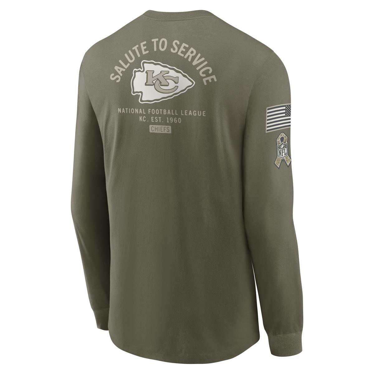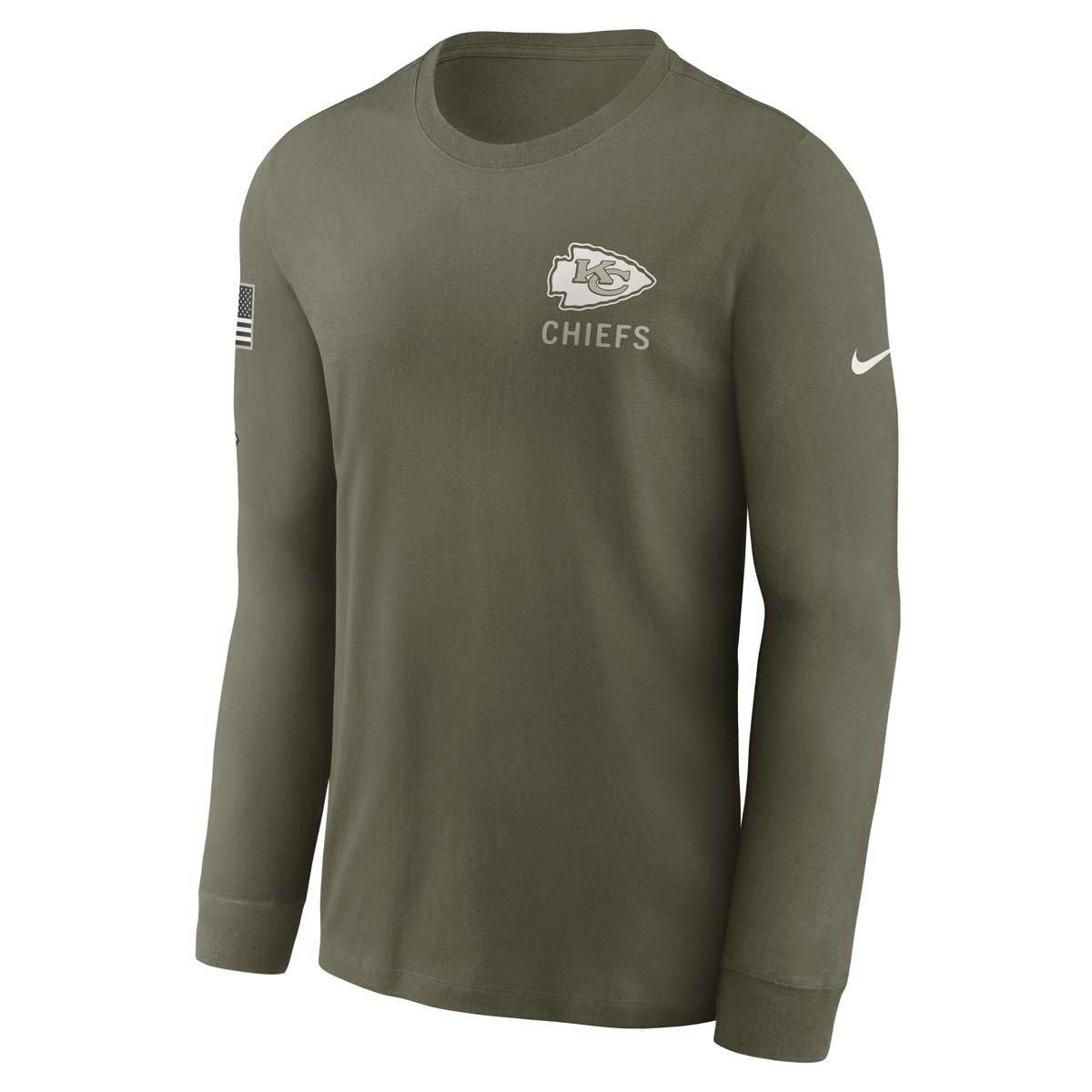 {"reviews":[],"offset":0,"limit":10,"total":0}"Full Description:\nShow everyone who you root for with the Nike Kansas City Chiefs 2025 Salute To Service Long Sleeve T-Shirt. Featuring Kansas City Chiefs graphics and colors, you’ll be ready to cheer your favorite NFL team to victory. Whether you’re heading to the game or just want to show off your favorite team, this Kansas City Chiefs top will leave no doubt where your loyalty lies. Wear your team’s colors and show off your pride with the Nike Kansas City Chiefs 2025 Salute To Service Long Sleeve T-Shirt.<br />\n<br />\n<br />\n\n"