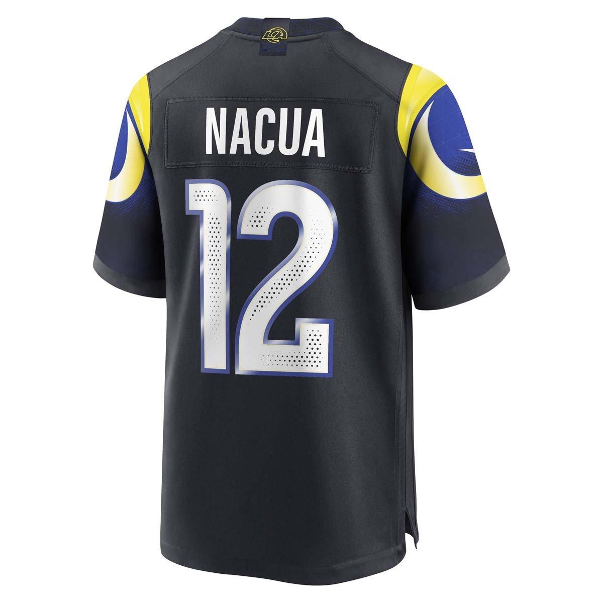 {"reviews":[],"offset":0,"limit":10,"total":0}"Full Description:\nGet ready for the next Los Angeles Rams game with the Nike Los Angeles Rams Puka Nacua #12 Rivalries Game Jersey. This Los Angeles Rams jersey features vibrant colors and graphics so you’ll be ready for game day. Whether you’re at the stadium or watching from the couch, this Puka Nacua jersey will let everyone know where your loyalty lies.<br />\n<br />\nFor more information, see our <a href="https://www.scheels.com/e/post/nfl-jersey-buying-guide.html">NFL jersey buying guide</a>.<br />\n<br />\n<br />\n<strong>Fabric Content:</strong><br />\n100% polyester\n\n"