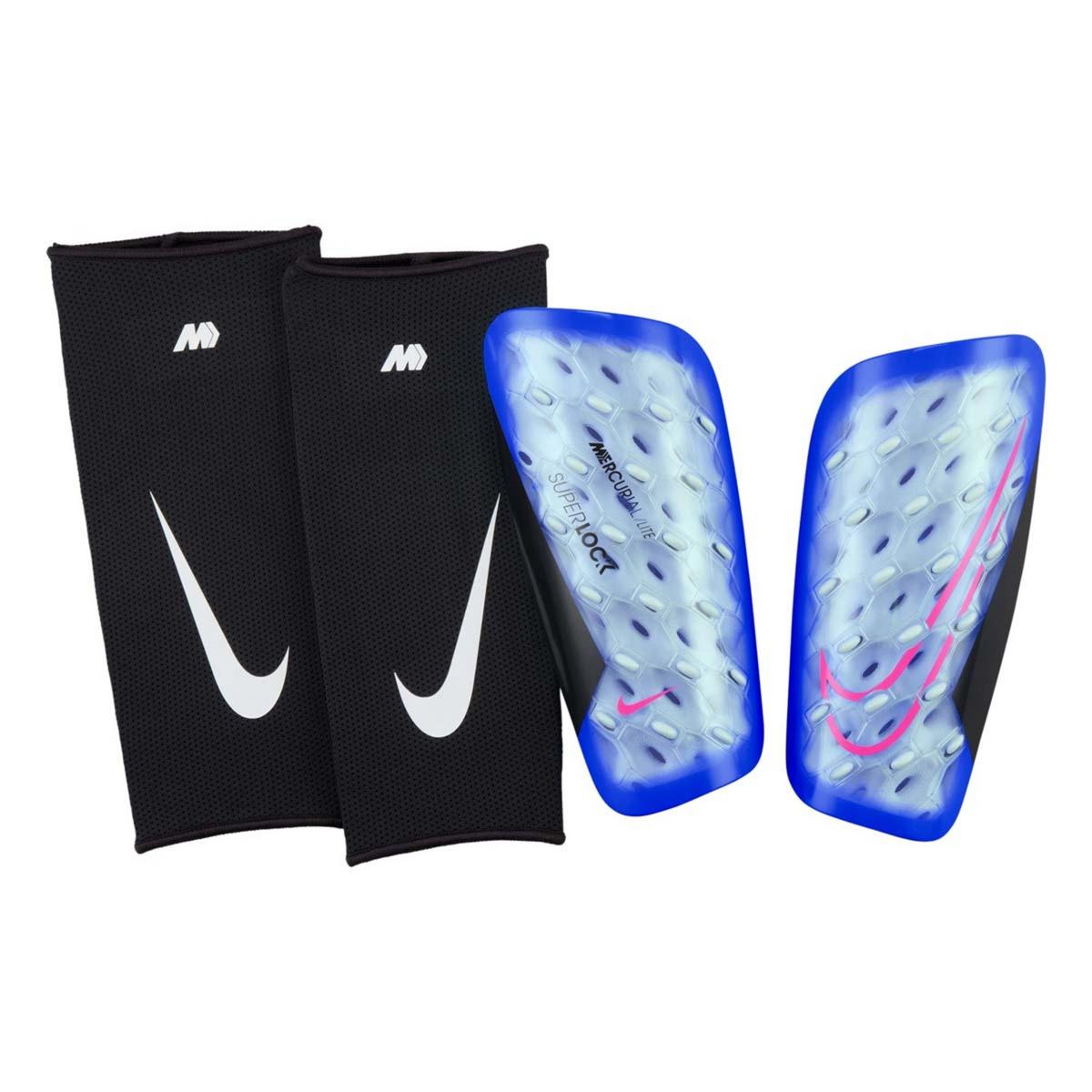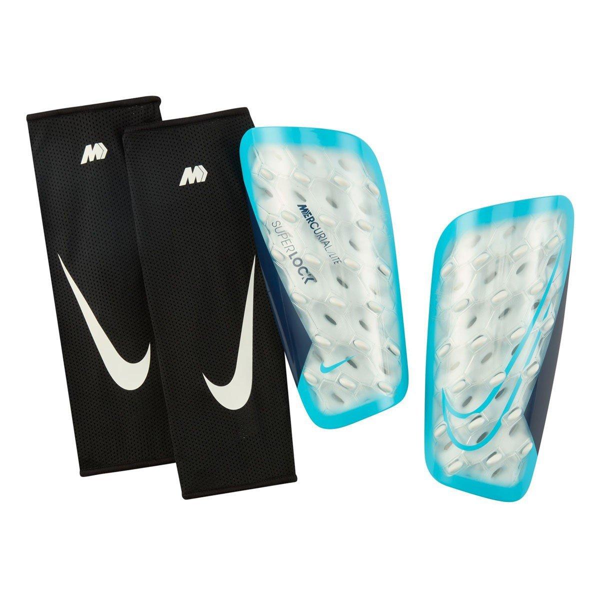 Protect your shins on the soccer field with the Nike Mercurial Lite Superlock Shin Guards. These ultra-lightweight shin guards feature Nike's innovative SuperLock technology, which locks into sock fibers to keep the shin guards secure and in place. The low-profile, durable shell is lightweight and won't slow you down, while soft, perforated foam helps cushion and absorb impacts. Featuring stretchy sleeves that use Dri-FIT technology to wick away sweat, these soccer shin guards will keep you distraction-free. With the Nike Mercurial Lite Superlock Shin Guards, you'll be ready to hit the field with confidence.