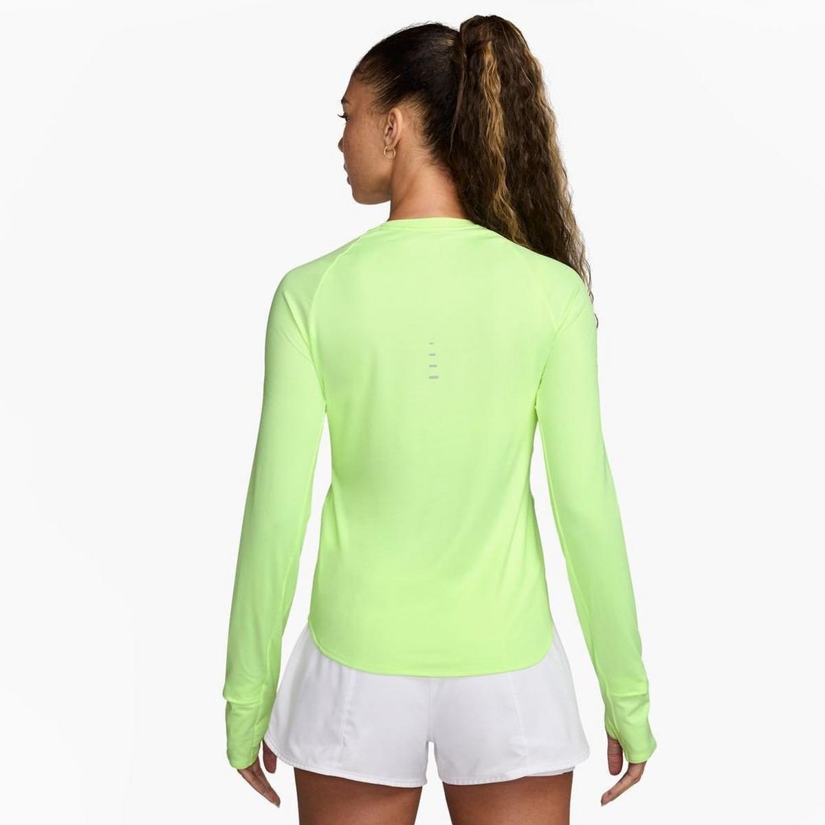 The Women's Nike Swift Dri-FIT UV Long Sleeve Shirt is designed to keep you comfortable when running. Featuring Nike Dri-FIT technology, this lightweight top wicks away sweat and dries quickly to keep you feeling fresh. The tapered waist allows for easy layering, while the curved hem provides added coverage. Thoughtful details like thumbholes to keep sleeves in place, a zip pocket for essentials, and watch windows on both sleeves offer enhanced convenience. With all these features, the Nike Swift Dri-FIT UV Long Sleeve Shirt is perfect for runs, hikes, or workouts.