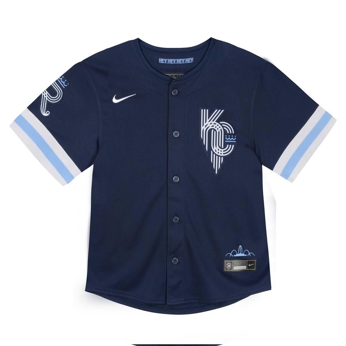 Get ready for the next Kansas City Royals game with the Nike Toddler Kansas City Royals City Connect Jersey. This Kansas City Royals jersey features vibrant colors and graphics so you’ll be ready for game day. Whether you’re at the stadium or watching from the couch, this jersey will let everyone know where your loyalty lies.