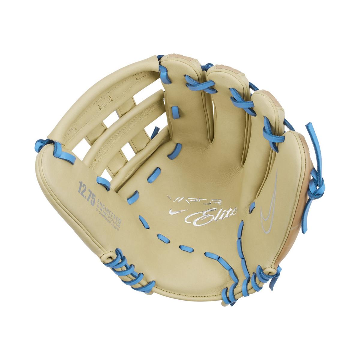 Constructed with premium leather on the palm, thumb, binding, web, and lacing, the Vapor Elite offers a soft, broken-in feel right out of the box while standing up to the demands of the season. A generous 12.75" size and Nike Proven Snake-Eye web create an ideal catching surface and excellent ball visibility, making it easier to track and secure towering catches in the gaps.