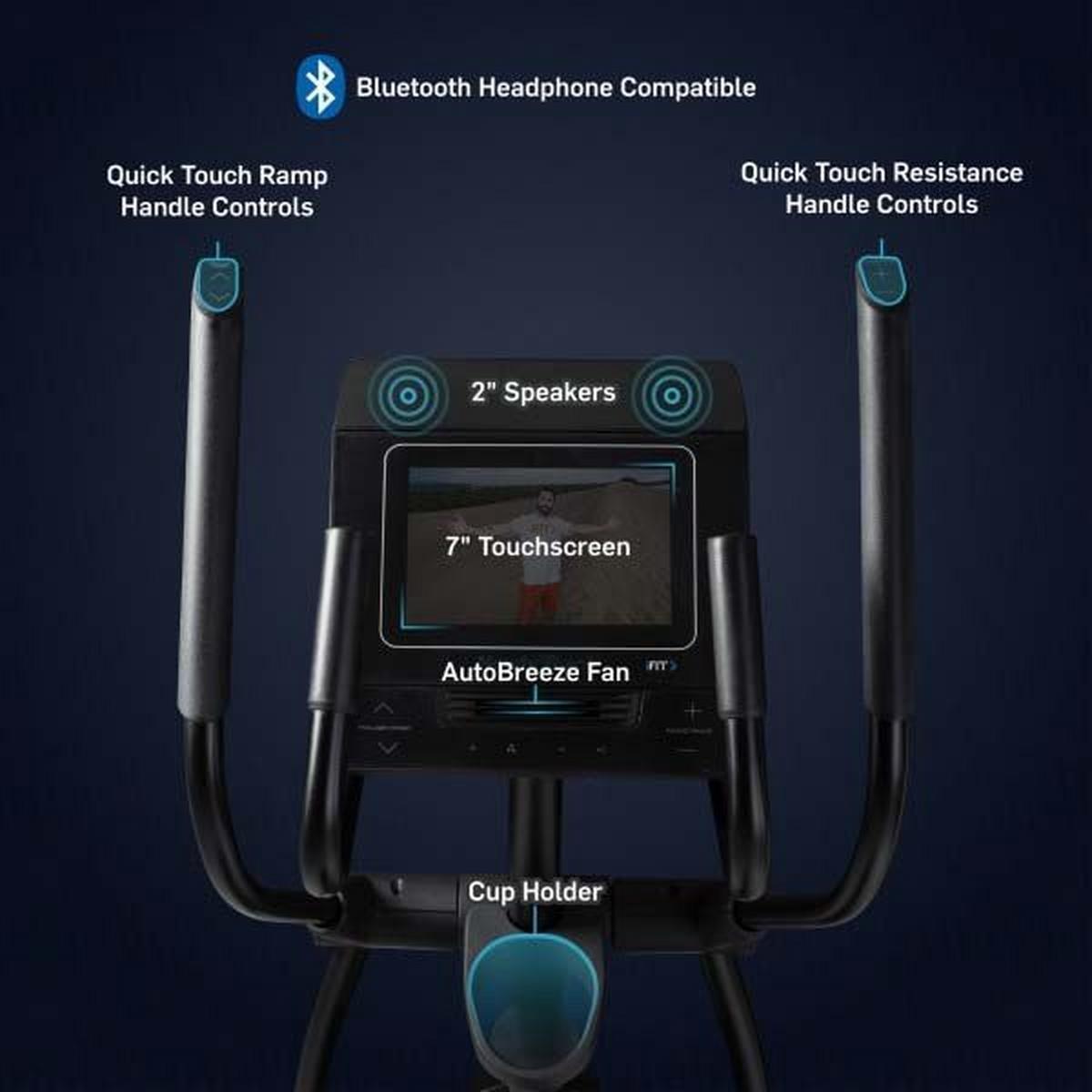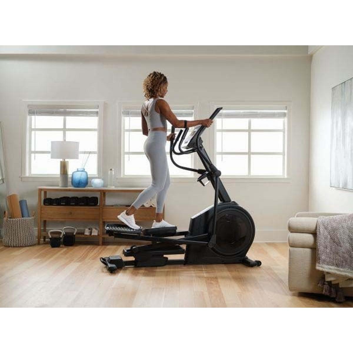 The NordicTrack AirGlide 7i Elliptical makes it possible to exercise with low impact in beautiful locations around the world from the comfort of your home. With an iFIT subscription, you can follow expert iFIT Trainers through thousands of outdoor workouts spanning the most beautiful locations across all seven continents on the 7” Tilting Touchscreen. iFIT's intelligent fitness technology can control your elliptical to deliver workouts that are personalized to you, no matter where you are in your fitness journey. SmartAdjust™ can automatically change your 22 digital resistance levels based on your workout history and performance for a hands-free, immersive experience. The power ramp of this elliptical goes from -5% to 15%. The AirGlide 7i Elliptical provides a great way to burn calories with low-impact traditional elliptical movements thanks to the front drive design. Your feet will stay comfortable and secure in the large and adjustable cushioned pedals. The soft touch handles are comfortable to hold even during the more intense parts of your workout. When you need it, the conveniently located water bottle holder makes water easy to reach. The built-in AutoBreeze™ Fan automatically adjusts its blowing power to match your workout intensity so you can stay cool during the toughest moments. Whether you prefer using your own Bluetooth® headphones or using the elliptical’s two 2” speakers, you’ll be able to listen to music and your trainer at the same time. *iFIT experience shown. Internet and WIFI required. iFIT Membership auto-renews for $39/mo plus tax unless canceled in advance. Cancel at any time.