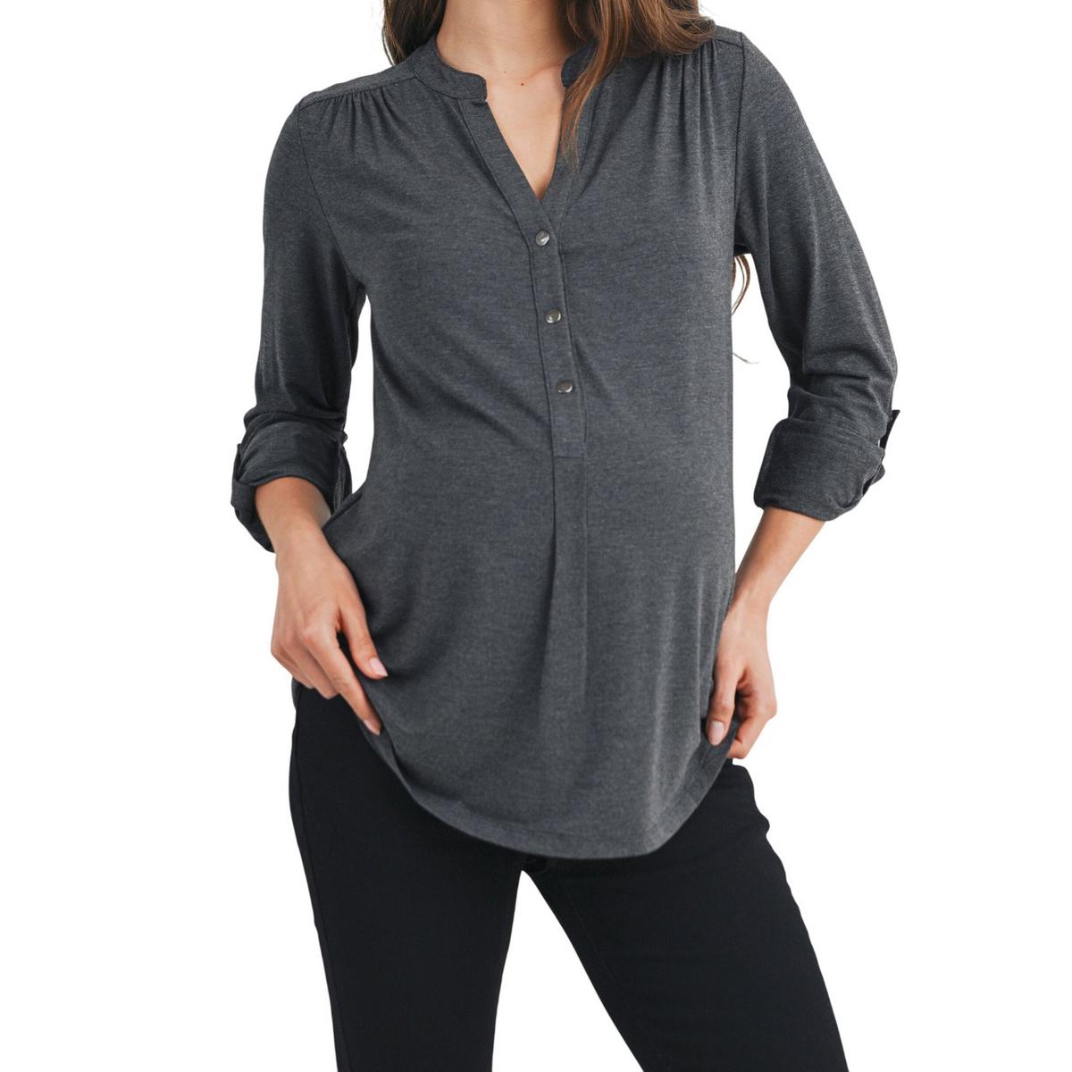 Women's Hello Miz Maternity Nursing Friendly Long Sleeve Notch Neck Henley