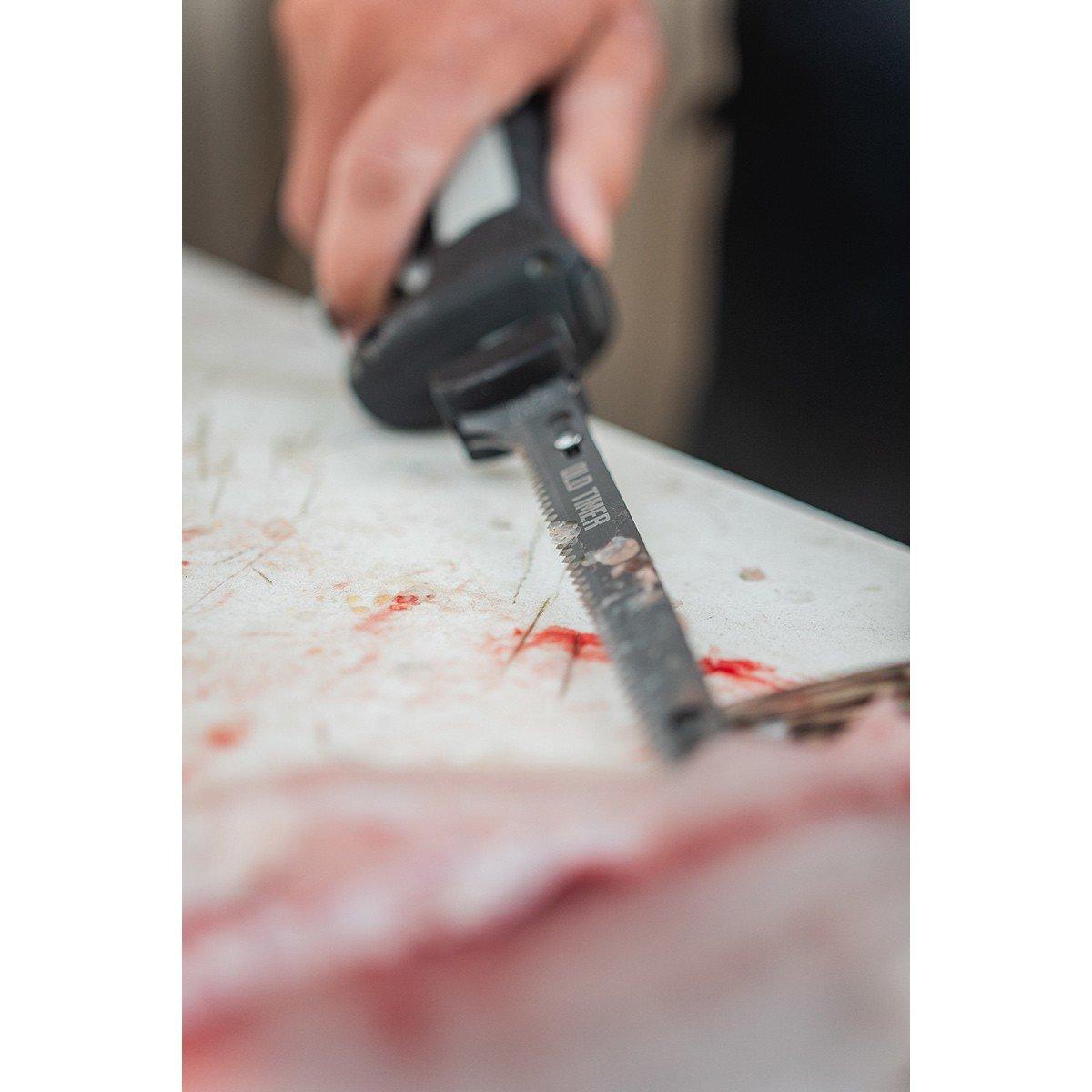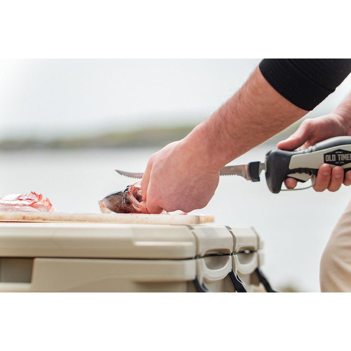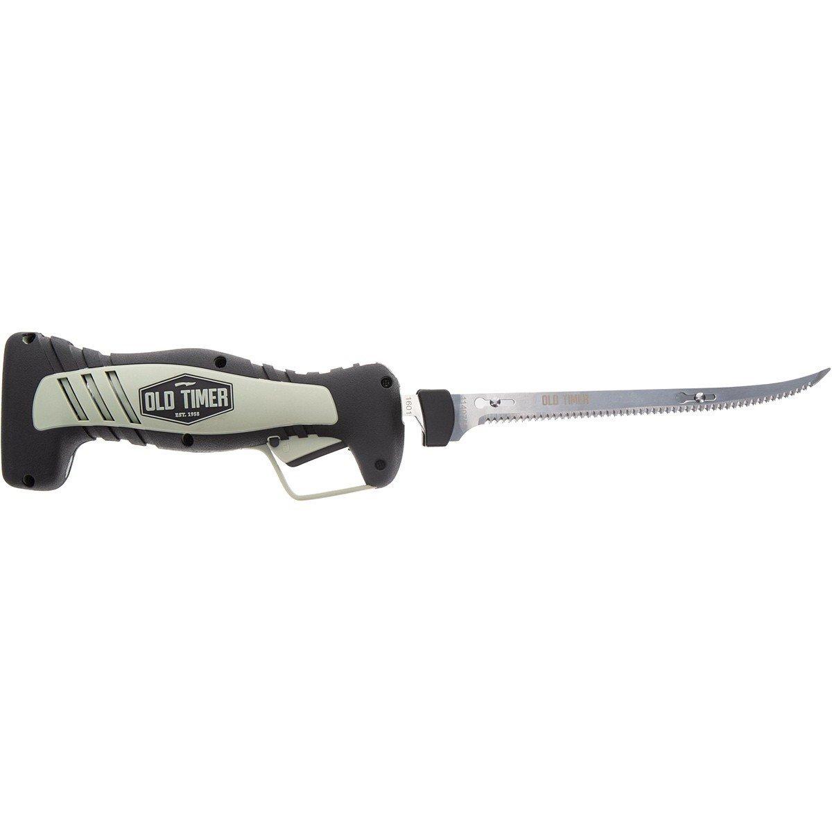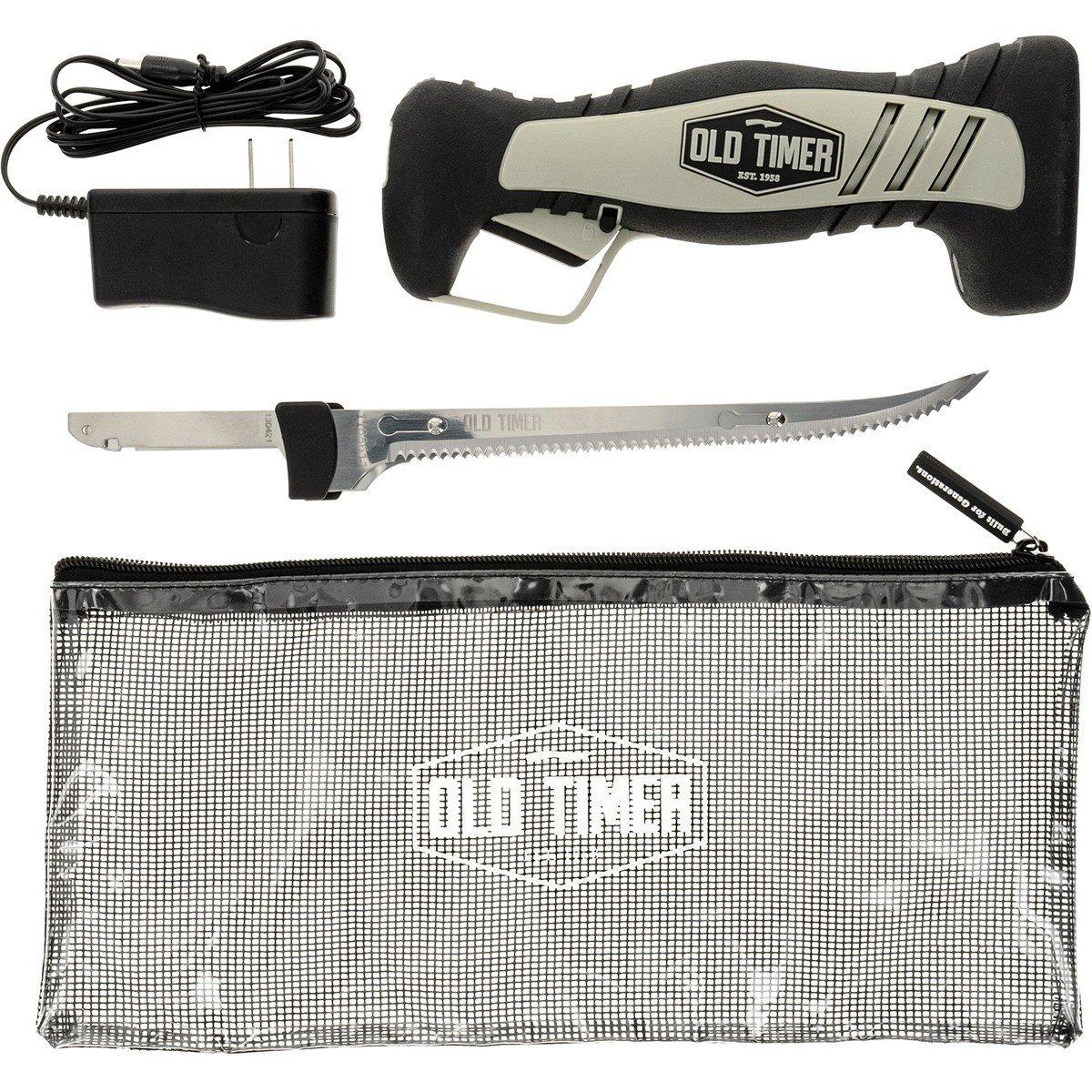 Fillet fish like never before with the Old Timer Lithium-Ion Electric Fillet Knife. This Old Timer Electric fillet knife offers 16,000 rpm cutting power with a 2.5-hour charge time so you can cut up as many fish as you need. The added safety feature on this electric fillet knife features a trigger guard and blade release for added security. Plus, the battery life indicator lets you know how much battery life is left on your current charge. Included in this product is an 8-inch stainless steel stiff blade, a charging cord, and a zippered storage case for convenience. Cut up your fish to either eat or store with the Old Timer Lithium-Ion Electric Fillet Knife.
