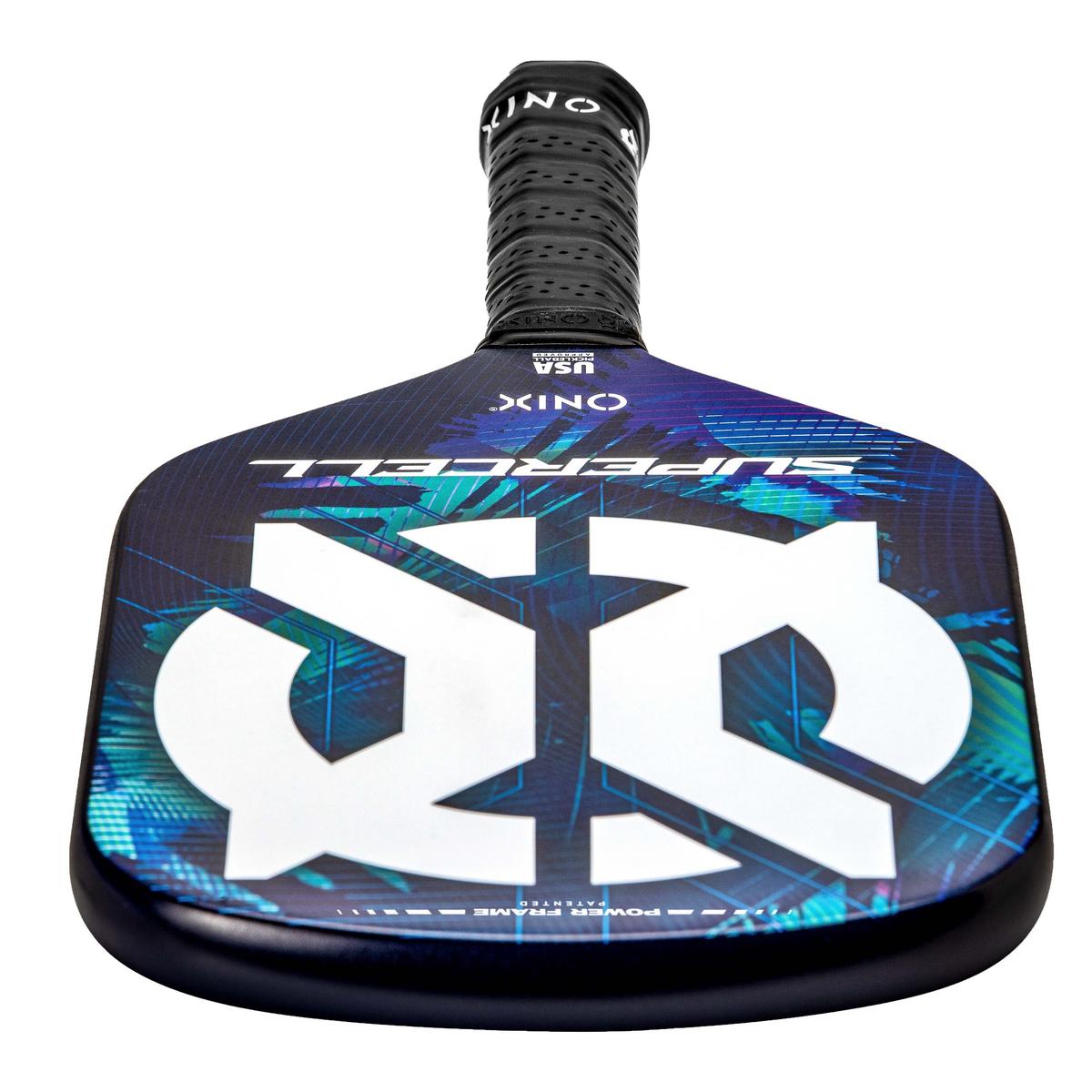 Introducing the Supercell Pickleball Paddle, the newest tournament ready paddle from ONIX Pickleball. The Supercell comes equipped with the latest technology engineered to win in competition. This all-new tournament paddle introduces ONIX's Cloud Control Technology, a large 22mm thick cross section core of the paddle that provides a giant sweet spot for the ultimate control and comfort throughout aggressive pickleball play. The paddle offers a sand paint finish with an 8mm polypropylene core. This innovative paddle offers seamless control and comfort throughout pickleball play within our patented Thermofused Technology, which molds the paddle to exact specifications. Featuring a foam filled Carbon Fiber Power Frame that wraps entire paddle providing extra strength for rigorous play, the Supercell Paddle is 16.5” in length with a grip circumference of 4 1/4” and a paddle face width of 7.4”; handle length of 5.5”; paddle weight of 8.0-8.4 oz. The Supercell paddle is great for players with shorter, slower strokes due to the ultra-thick cross section core. This paddle meets and is approved by USA Pickleball requirements deeming it acceptable for all official tournament play. Play your best with ultimate ball control and touch in the new Supercell paddle.