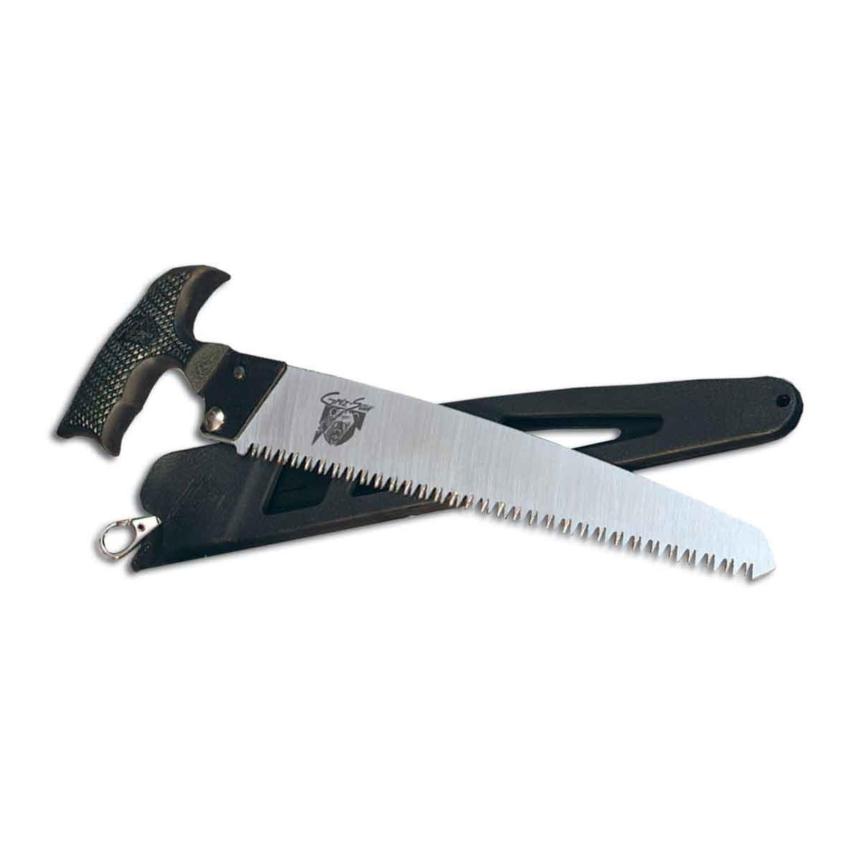 The Outdoor Edge Griz Saw easily penetrates tough bone and tree limbs. The T-shaped handle on this Outdoor Edge saw allows straight cutting from any angle. Plus, the handle is textured to provide a secure grip even when wet. The blade is made with 65Mn spring steel and features a triple-ground tooth pattern that efficiently cuts through tough wood and bone. Ideal for clearing tree limbs or quartering game, the Outdoor Edge Griz Saw has an aggressive edge for efficient cutting with less fatigue.