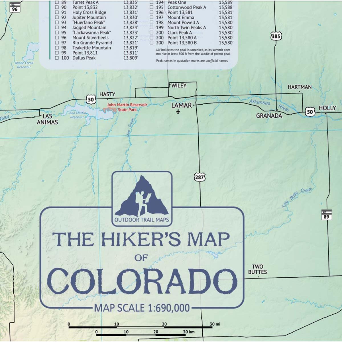 Outdoor Trail Maps The Hikers Map of Colorado - Wall Poster Map