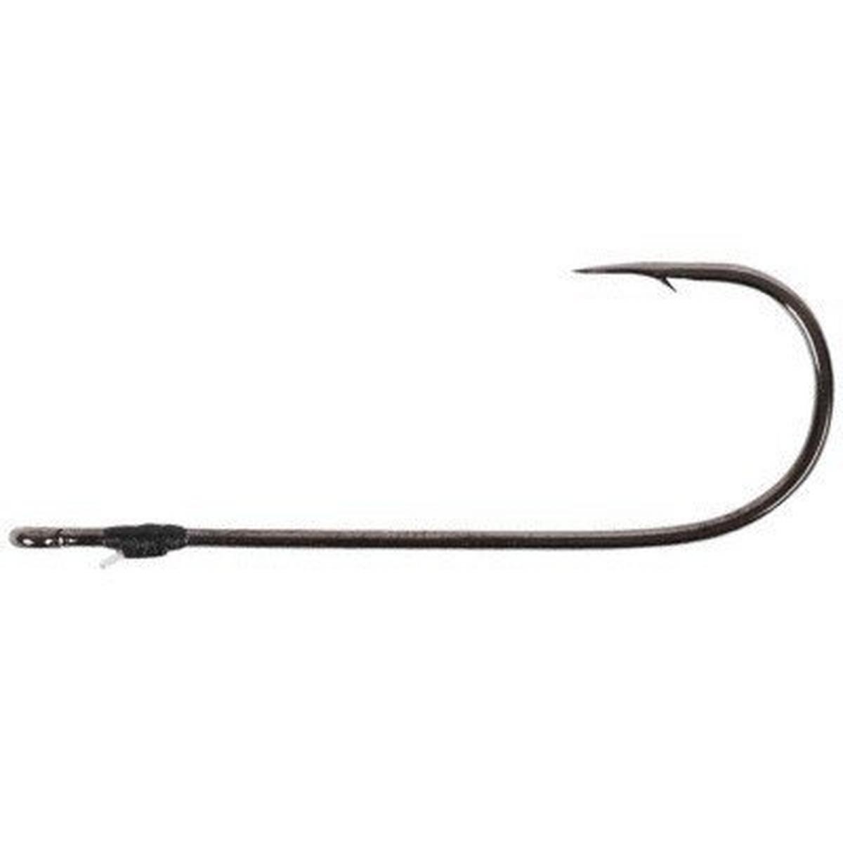 A light finesse style hook for rigging small worms and baits. Typically used as a drop shot hook, this hook is made from fine wire for easy hooksets with light lines. The bait keeper is meticulously wrapped onto the shank to prevent the keeper from sliding or spinning. The monofilament keeper allows soft, supple baits to be threaded over it without damage, yet still holds extremely well once on the other side. Comes with Super Needle Point and Silky Gray frictionless finish.