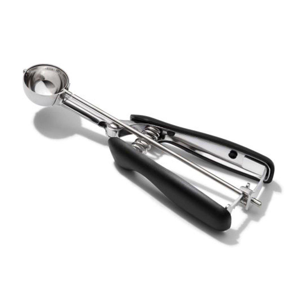This size 70 portioner holds 1 Tablespoon of dough or batter to make perfectly uniform cookies every time. It's ideal for making bite-size, 2-in diameter cookies to use for holiday party trays, donating to bake sales and filling lunchboxes with love. The stainless steel scoop cuts cleanly through dough, while the wiper ejects it easily with a squeeze of the spring-loaded handle. Comfortable, non-slip grips allow you to make large batches of cookies without breaking a sweat. Dishwasher safe.