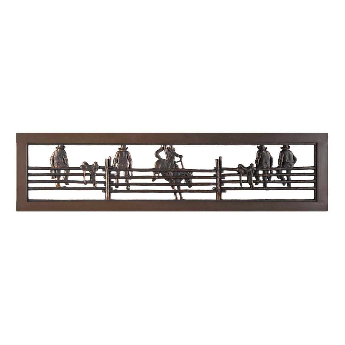 Our Tube Steel Cowboy Rodeo Bench offers a lightweight, durable seating option for your outdoor space. Featuring a two-tone frame with a brown seat and back frame and charcoal gray side rails, this bench showcases an artist-designed cast iron back. The Cowboy Rodeo Bench features cowboys resting on a fence and live rodeo action, making it the perfect addition for those who love the spirit of the West.