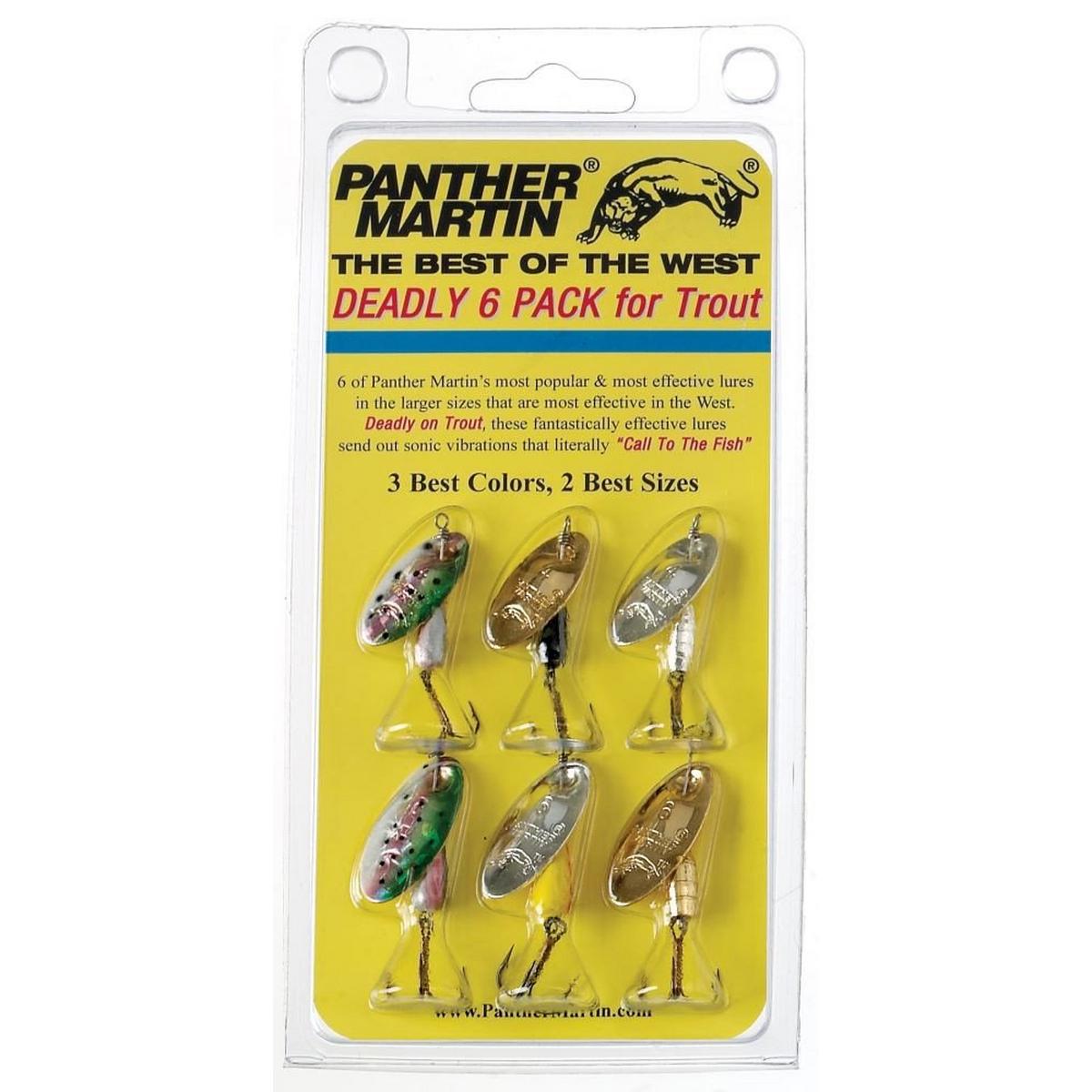 6 of Panther Martin's most popular & most effective lures in the larger sizes that are most effective in the West. Deadly on trout, these fantastically effective lures send out sonic vibrations that literally "Call to the fish".