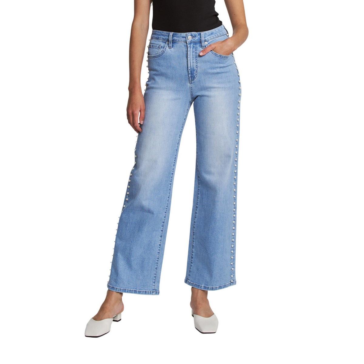 Women's Mica Denim Pearl Embellishment Wide Leg Jeans