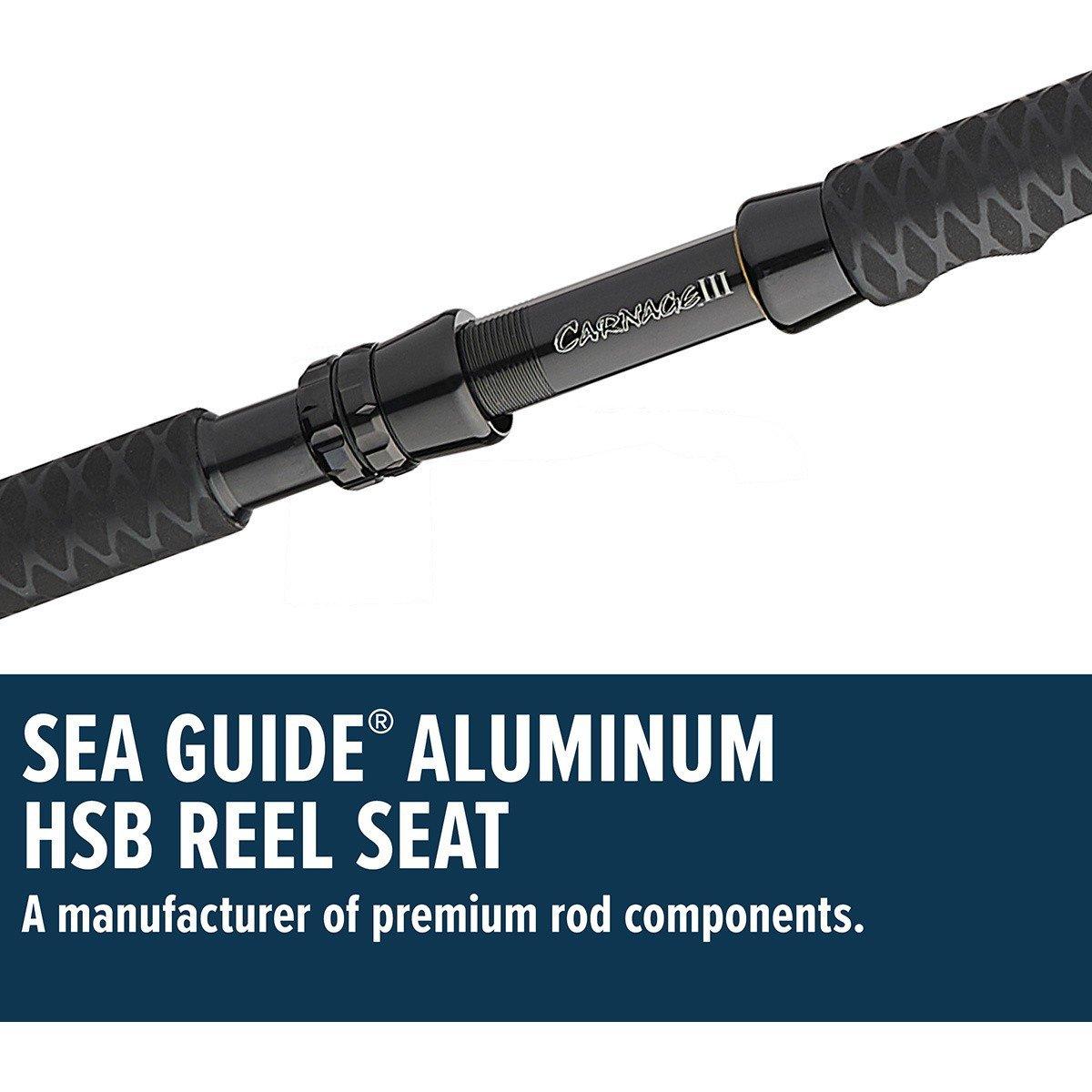 The PENN® Carnage™ III rods are truly in a class of their own. These rods represent the next generation of high-performance rod building with powerful, lightweight blanks that are also extremely durable. Our proprietary SLS3 blank construction provides a very thin diameter blank, while maintaining a lightweight feel which is ideal for heavier boat, jig, surf, and nearshore models. Spec’d with high-end components like Fuji® K-Guides, Sea-Guide® and Fuji® reel seats, and Hypalon/Rubber Shrink tube handles, this rod will be anglers’ next go-to workhorse.