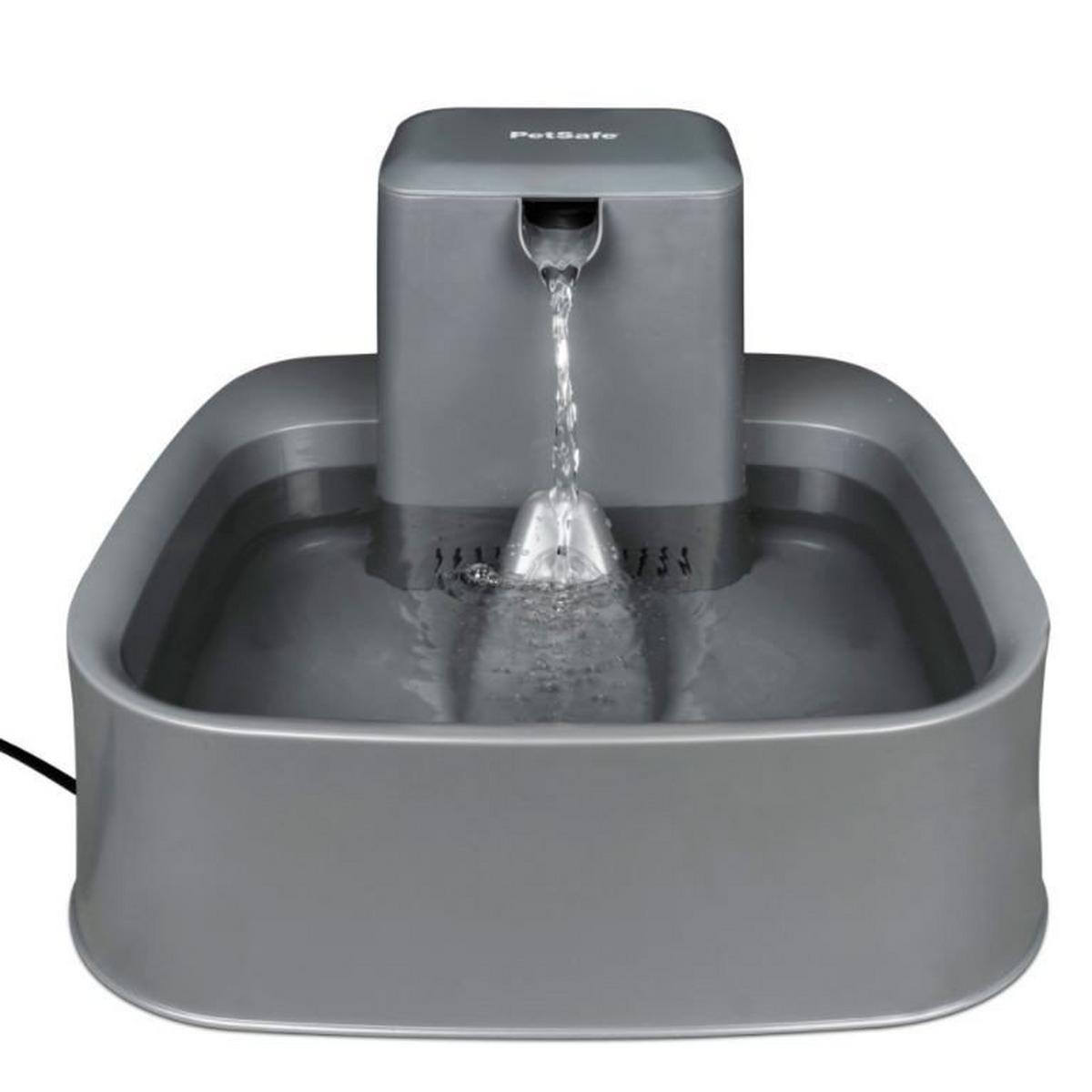 If you have a big dog or multiple pets in your family, the 2 Gallon Pet Fountain is the perfect size! Pets love running water and are drawn to it. Pet fountains entice pets to drink more water which keeps them healthy and hydrated. With this fountain, pets can drink from the free-falling stream or the bowl (which is awesome) because your pet needs 1 ounce of water per 1 pound they weigh every day. This fountain has adjustable flow control which lets you customize the free-falling water stream, so no matter your pet’s personality, they’ll feel comfortable drinking from their new fountain. We’ve designed the fountain to be tip and spill resistant, so you won’t have to worry about cleaning up puddles. Also, the open bowl means that even if the power goes out, your pet will still have access to water. To keep water fresh, we use dual- filtration technology to remove pet hair, debris, bad tastes and odors. A carbon filter, foam filter and fountain pump work together to keep water filtered and clean, and the constant circulation helps to prevent bacteria growth. This plastic pet fountain is top-rack dishwasher safe, and we’ve designed it with no hard-to-reach places to make cleaning simple – all you’ll need to do is handwash the pump separately. Your pet deserves the best. Trust PetSafe® to keep your pet healthy, safe and happy.