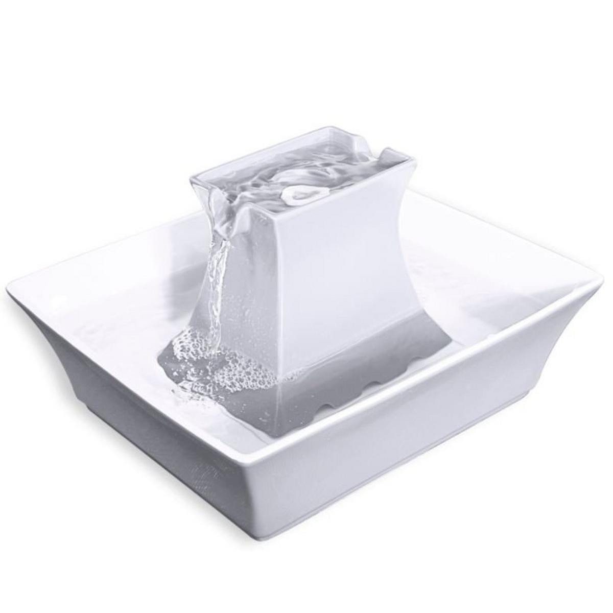 Keep your cat healthy, happy and hydrated with the PetSafe Pagoda Ceramic Pet Fountain. This pet fountain has 2 free-falling water streams that encourage your cat or dog to drink more water. Free-falling streams add more oxygen to the water and keep it fresh for your pet. An activated carbon filter removes bad tastes and odors from your pet’s water, and the foam filter helps catch pet hair and other debris to keep the water clean. This fountain holds 70 ounces of water and has an open-bowl design, so if your home loses power, your pet will still have access to water from any side. The elevated, upper bowl is great for senior pets, so they won’t need to bend as low to drink. This ceramic fountain is available in 4 colors to blend seamlessly with your home décor. When it’s time to clean your fountain, simply place the fountain in the top rack of your dishwasher and hand wash the pump separately. Trust PetSafe to help keep your pet healthy, safe and happy.