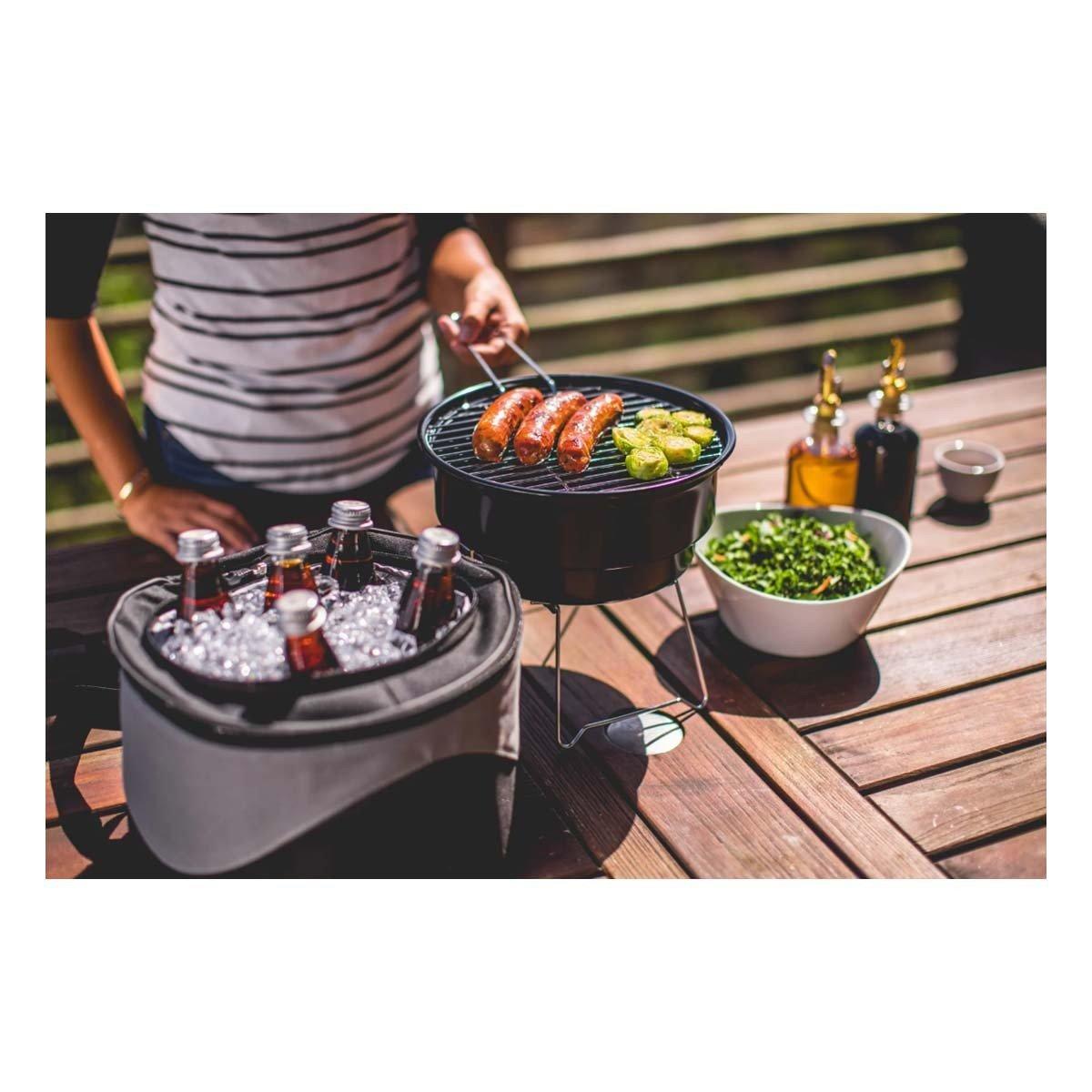 {"reviews":[],"offset":0,"limit":10,"total":0}"Full Description:\nBYOBB? That's right, bring your own beer AND BBQ with the Picnic Time Caliente Portable Grill, a durable and compact cooler tote!\n\nFeatures:\n\u003cul>\n\u003cli>Portable charcoal BBQ grill in a carrying tote that doubles as a cooler\u003c/li>\n\u003cli>BBQ grill has an enameled fire bowl and a chrome-plated 10" grate providing a grilling surface of 78.5 sq. in.\u003c/li>\n\u003cli>Water-resistant cooler holds up to six 12-oz. cans\u003c/li>\n\u003cli>Pocket on cooler exterior for extra storage\u003c/li>\n\u003c/ul>\n\nSpecifications:\n\u003cul>\n\u003cli>1 Combination Storage Bag/Cooler (12" x 12" x 8.25"), 1 Round 10" Diameter Portable Charcoal Barbecue Grill, 1 Round 9" Diameter Charcoal Grate, 1 Metal Handle For Cooking Grate (9"), 2 Metal Legs (6") Care Instructions: Surface wash tote with damp cloth only. Clean grill with mild dishwashing detergent or baking soda or use a citrus-based degreaser and nylon scrubbing brush.\u003c/li>\n\u003cli>BUILT TO LAST Lifetime Guarantee\u003c/li>\n\u003c/ul>\n"
