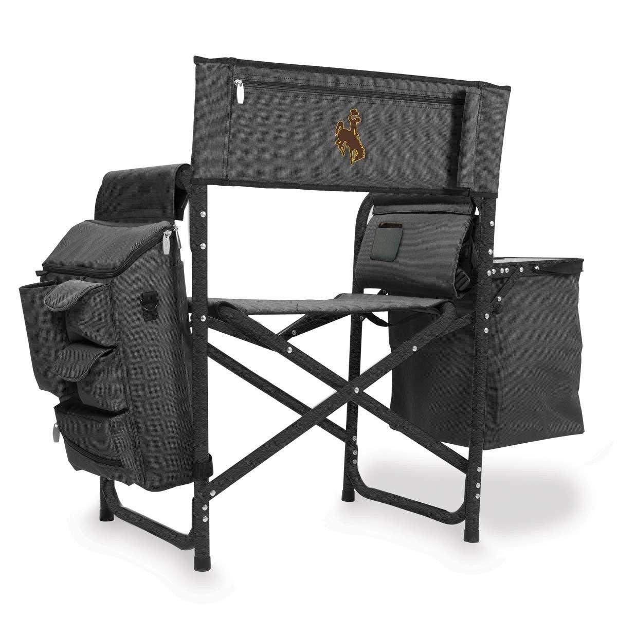 {"reviews":[],"offset":0,"limit":10,"total":0}"Full Description:\nPicnic Time Wyoming Cowboys Fusion Camping Chair\n\nFeatures:\n\u003cul>\n\u003cli>Folds flat for easy transportation and storage\u003c/li>\n\u003cli>350 lb. Maximum weight capacity\u003c/li>\n\u003cli>Durably constructed aluminum frame with a powder coated finish and low side bars to prevent chair sinking in the sand\u003c/li>\n\u003cli>Ribbed padding in seat and back rest for extra comfort\u003c/li>\n\u003cli>19.5" wide seat that sits 16.5" above ground\u003c/li>\n\u003cli>Molded cup holder in table tray with stability groove for cups with handles\u003c/li>\n\u003cli>Padded backpack strap system for secure and easy hands-free carrying\u003c/li>\n\u003cli>Pocket specially designed and located to hold a cell phone or portable music device\u003c/li>\n\u003cli>Folding tray table on side with two-tiered accordion-style, expandable fabric shelves that fold into underside of table when not in use\u003c/li>\n\u003cli>Molded cup holder in tray table\u003c/li>\n\u003cli>Fully-detachable, side-mounted 24+1-can insulated cooler with a multitude of storage pockets and adjustable shoulder strap so cooler can be used independent of the chair\u003c/li>\n\u003c/ul>\n\nSpecifications:\n\u003cul>\n\u003cli>Care Instructions: Surface wash with a damp cloth.\u003c/li>\n\u003cli>Includes: 1 Portable Folding Chair (19" x 24" x 33"), 1 Detachable Insulated Cooler (15" x 5.5" x 17.5"), 1 Detachable Armrest with Folding Backpack Strap System and Electronics Pocket (14.5" x 11")\u003c/li>\n\u003c/ul>\n"