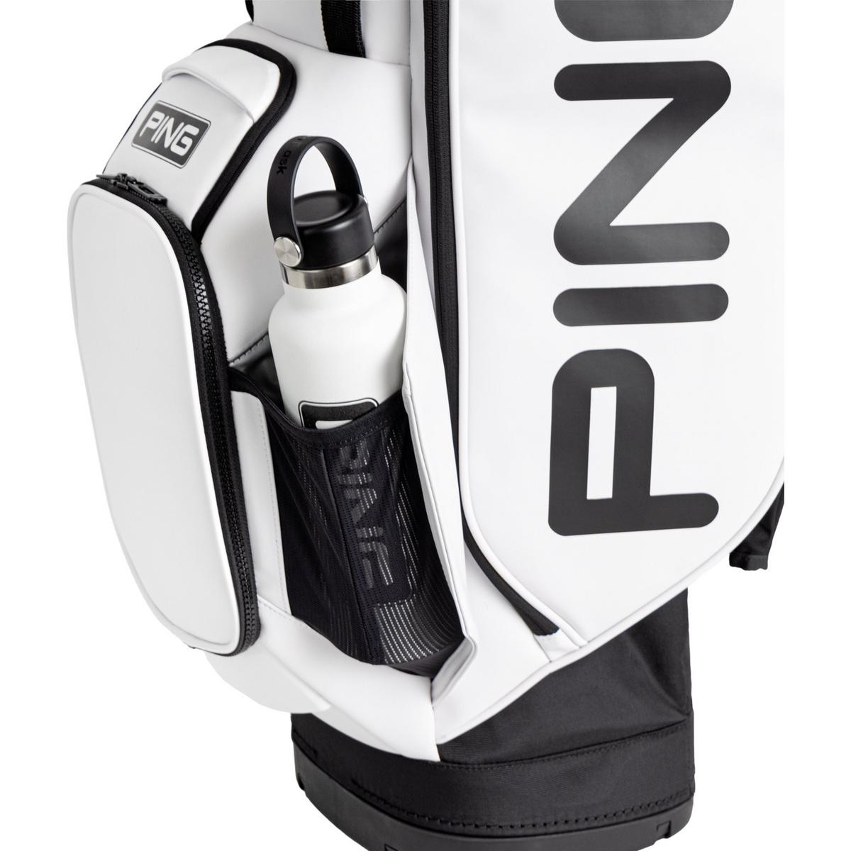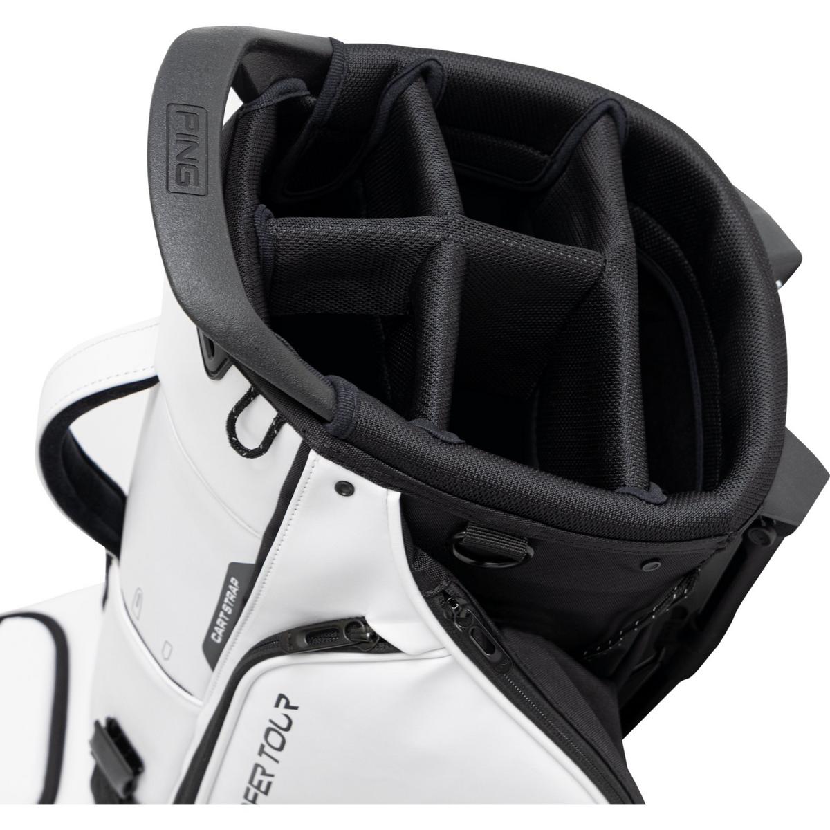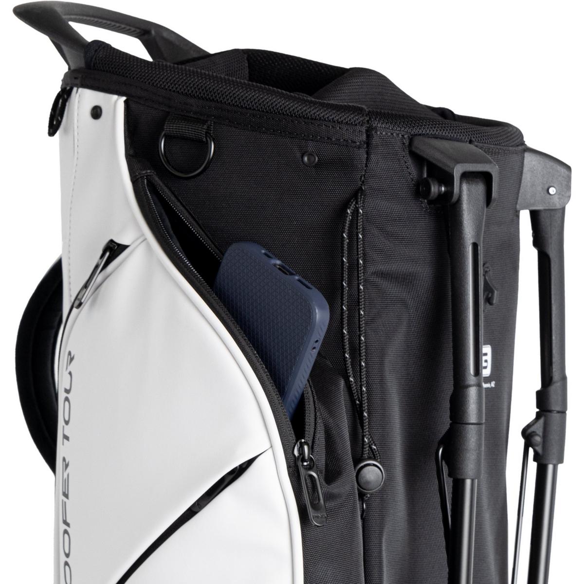 Sporting tour-inspired branding, this new design is lightweight and loaded, a perfect complement to your game. It is fully featured and weighs only 6.2 pounds. Organization is made easy with a roomy five-way top and 10 pockets, including two magnetic water-bottle pockets, a magnetic rangefinder pocket, and a full-length apparel pocket.