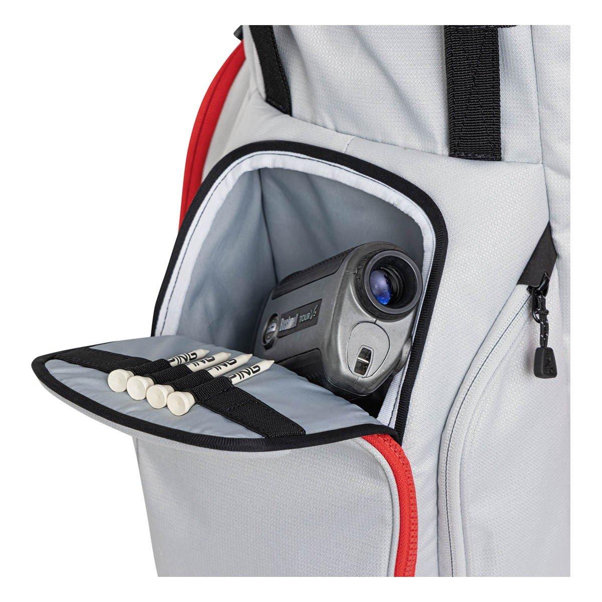 The 14-way top is an organized golfer’s ideal arrangement, making club selection easy and orderly. To improve club removal and replacement, an innovative bag bottom guides clubs to the correct segment and keeps them separated while carrying or carting. A slimmer stacked pocket configuration allows for easier access to all 17 pockets. Made from rugged 300D polyester, Hoofer 14 sports a number of new colorways.