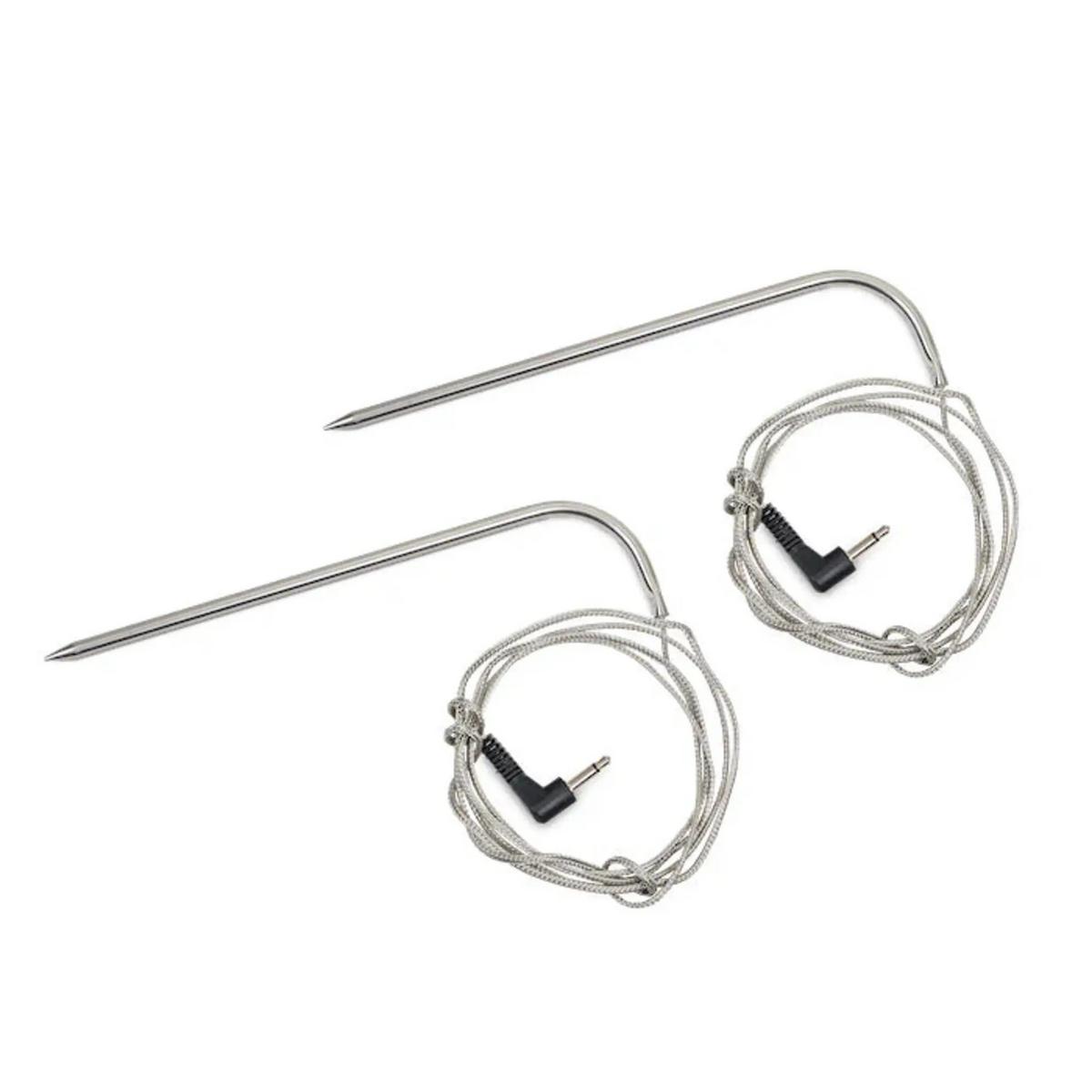 The Pit Boss 2-Pack Meat Probe Set includes two 6" probes with 48" high heat woven wire, allowing you to easily track the internal temperature of your meat while it cooks. These probes are compatible with all Pit Boss grills and smokers that have digital control meat probe capability, and are seamlessly integrated into the digital control system for convenient use.