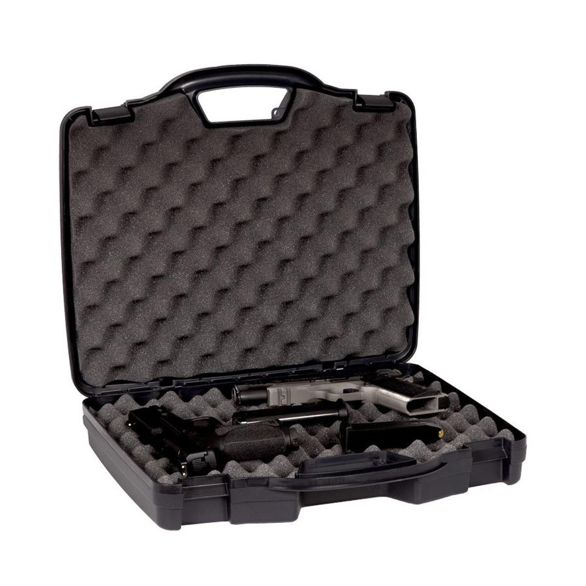 The Protector Series offers secure protection at a great value for the everyday hunter or target shooter. Featuring thick-walled construction, molded-in handles, secure latches and padlock tabs for secure storage, the Protector Series™ Two-Pistol Case case holds two pistols with plenty of extra room for accessories.