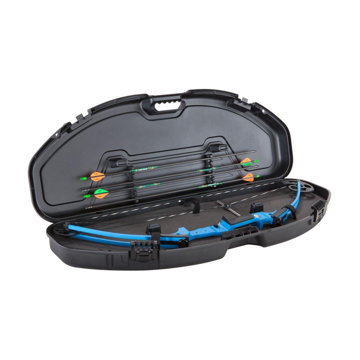 The Plano Ultra Compact Youth Bow Case is designed to safely store and transport smaller compound bows. This hard bow case is lighter and more compact than traditional hard cases, making it easy for young archers to carry. Internal tie-down straps keep the bow secure in the case, while integral arrow holders provide storage for up to six arrows. For rugged protection, this youth archery case has dense foam padding and Plano's patented crushproof PillarLock® system. With a molded-in handle for comfortable carrying, the Plano Ultra Compact Youth Bow Case offers durable protection for youth compound bows.