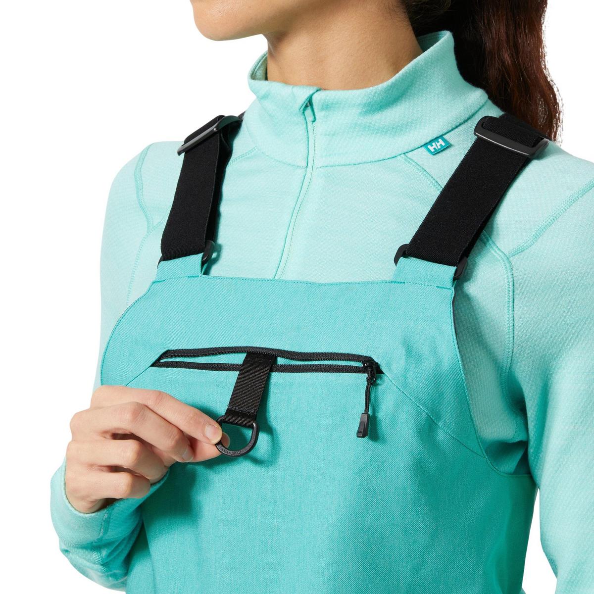 We designed our Women's Powderqueen Bib Pants 2.0 for resort and side country skiers who need reliable protection and functionality in powder, trees, and steeps. Made with HELLY TECH® Performance technology, these seam-sealed, 2-layer bib pants provide excellent waterproofing and breathability, while PrimaLoft® Black Eco insulation adds lightweight warmth. The updated bib construction features an improved drop seat for enhanced comfort (or when nature calls), as well as a LIFE POCKET™ on the thigh to keep your phone battery running longer in the cold. With a large chest pocket, feminine and functional elasticated suspenders, an elastic waist, and articulated knees, these pants ensure optimal comfort and mobility. Boot gaiters and reinforced hems add durability, making these waterproof women’s bib pants ready for deep powder.