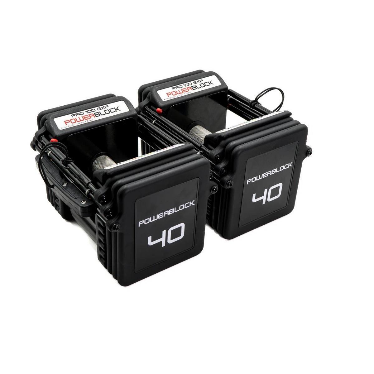 The PowerBlock Pro 100 EXP adjustable dumbbell set starts with stage 1 at 40 pounds with the option to add 3 additional expansion kits to get to 60, 80, or 100 pounds. Scale up or down as needed to customize your workouts.