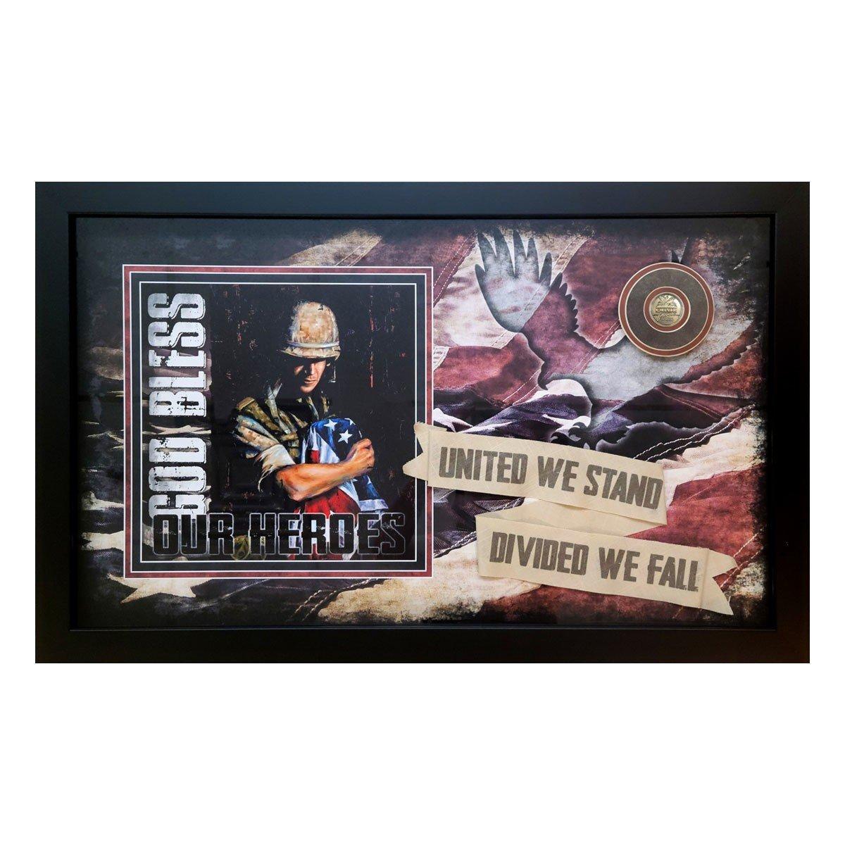 Print & Frame Quail Forever Bless America's Heroes Patriotic Shadow Box