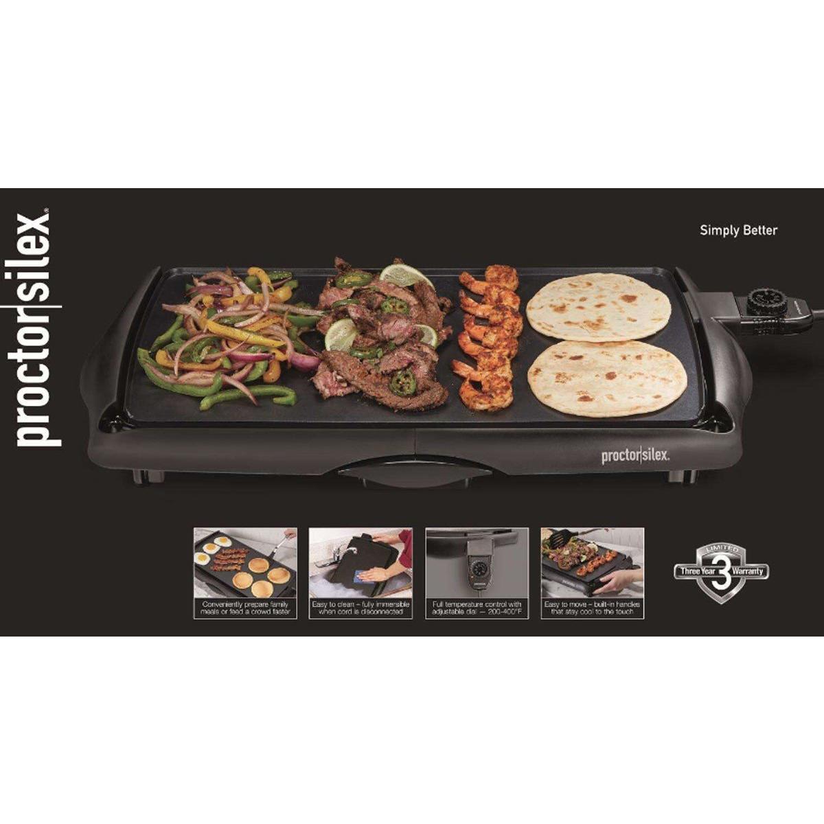 Proctor Silex Electric Skillets and Griddles make it easy to prepare breakfast, lunch and dinner. These nonstick appliances are perfect for frying bacon and eggs, cooking pancakes and sauteing an endless variety of ingredients. With a Proctor Silex Electric Skillet or Griddle on your countertop, you can create satisfying, one-dish meals that eliminate the need to clean multiple pots and pans. To make cleaning even easier, the nonstick cooking components are either dishwasher safe or are fully immersible with the cord removed.