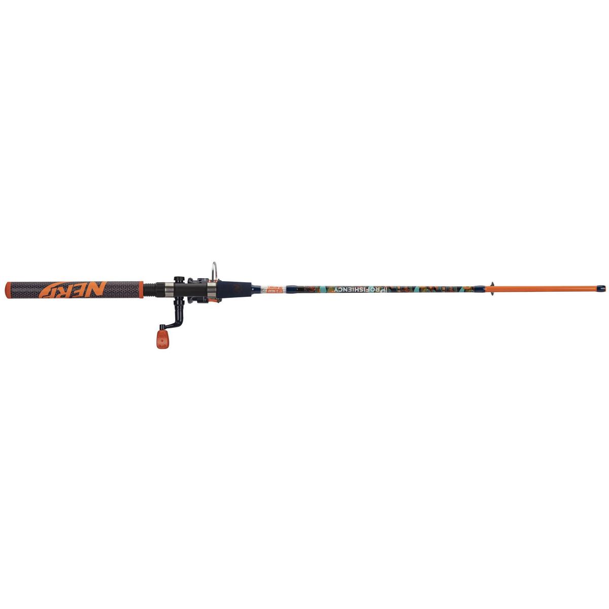 It's Nerf or Nothing! The Nerf Micro Spin Combo brings one of the hottest kid's brands to the fishing world! The combo features a one-piece 5'6" medium light fiberglass rod with a premium padded handle and foregrip. The Micro Spinning reel features a 2 bearing 5.2:1 gear ratio reel, that comes pre-spooled with 6lb Abrasion resistant line. The combo comes with a Nerf practice dart to help dial in your casting, and make sure you are ready when you hit the water!