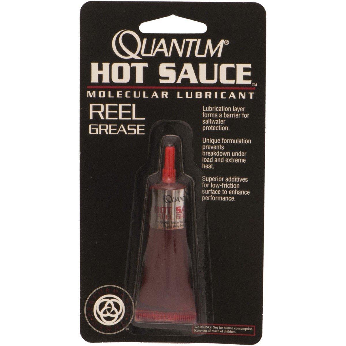 Properly lubricating your reel with Quantum Hot Sauce Reel Grease will add years of use to moving parts and extra yards of casting distance. The gears of modern reels require the right grease in the right location to function smoothly and to keep them from grinding themselves into metalflake. The engineers at Quantum worked with lubrication specialists to develop a grease specifically for reels and called it Hot Sauce. Standard greases break down from heat and will migrate out of the critical friction areas. The carrying agents in Hot Sauce prevent structural breakdown in the grease and also in the low-friction polymers. Hot Sauce's exclusive tackifiers hold the grease on the wear surfaces and prevent migration. The hydrophobic formulation pushes water away from gears and drags, preventing corrosion. The bright red color lets you know Hot Sauce grease is where it belongs and is doing the job you intended.