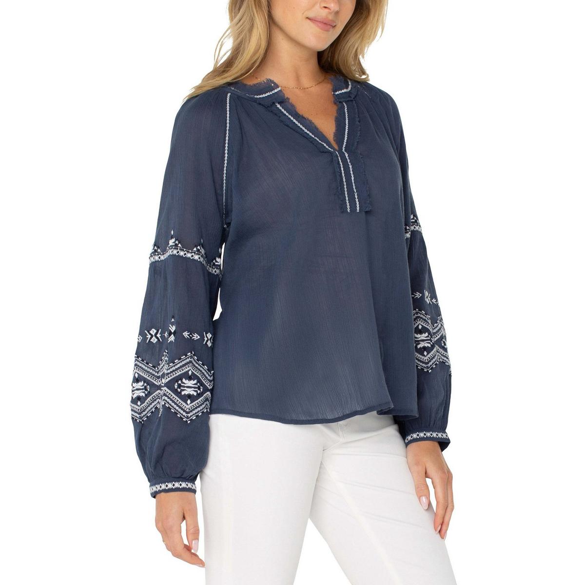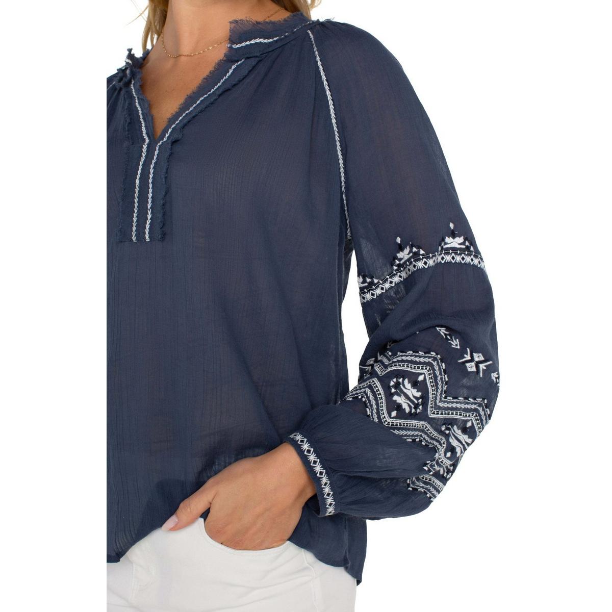 Women's Liverpool Los Angeles Raglan Woven Long Sleeve Notch Neck Blouse