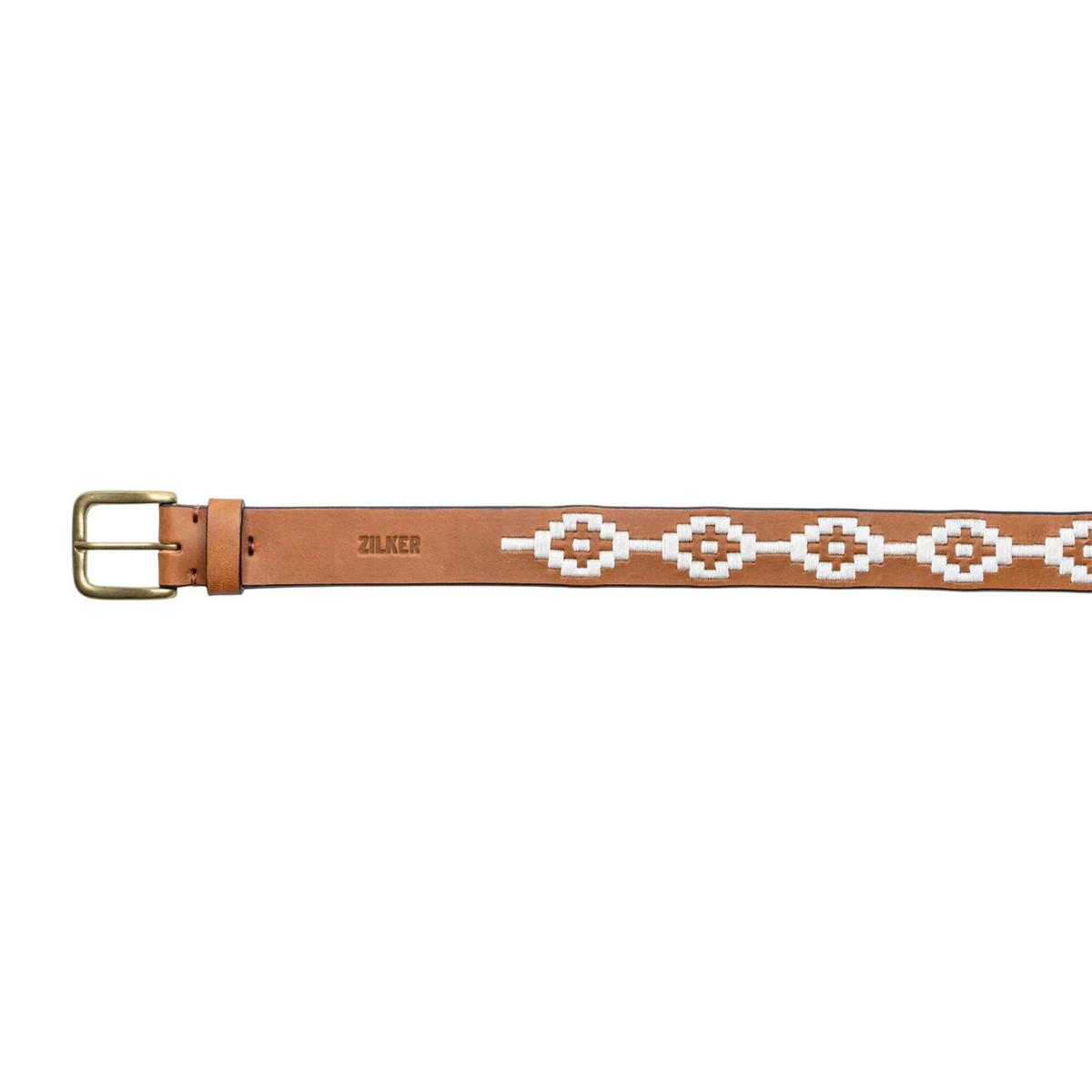 Our classic, best selling Zilker Belt. World-class light brown Argentine leather with white nylon thread, artfully hand-stitched in Buenos Aires.