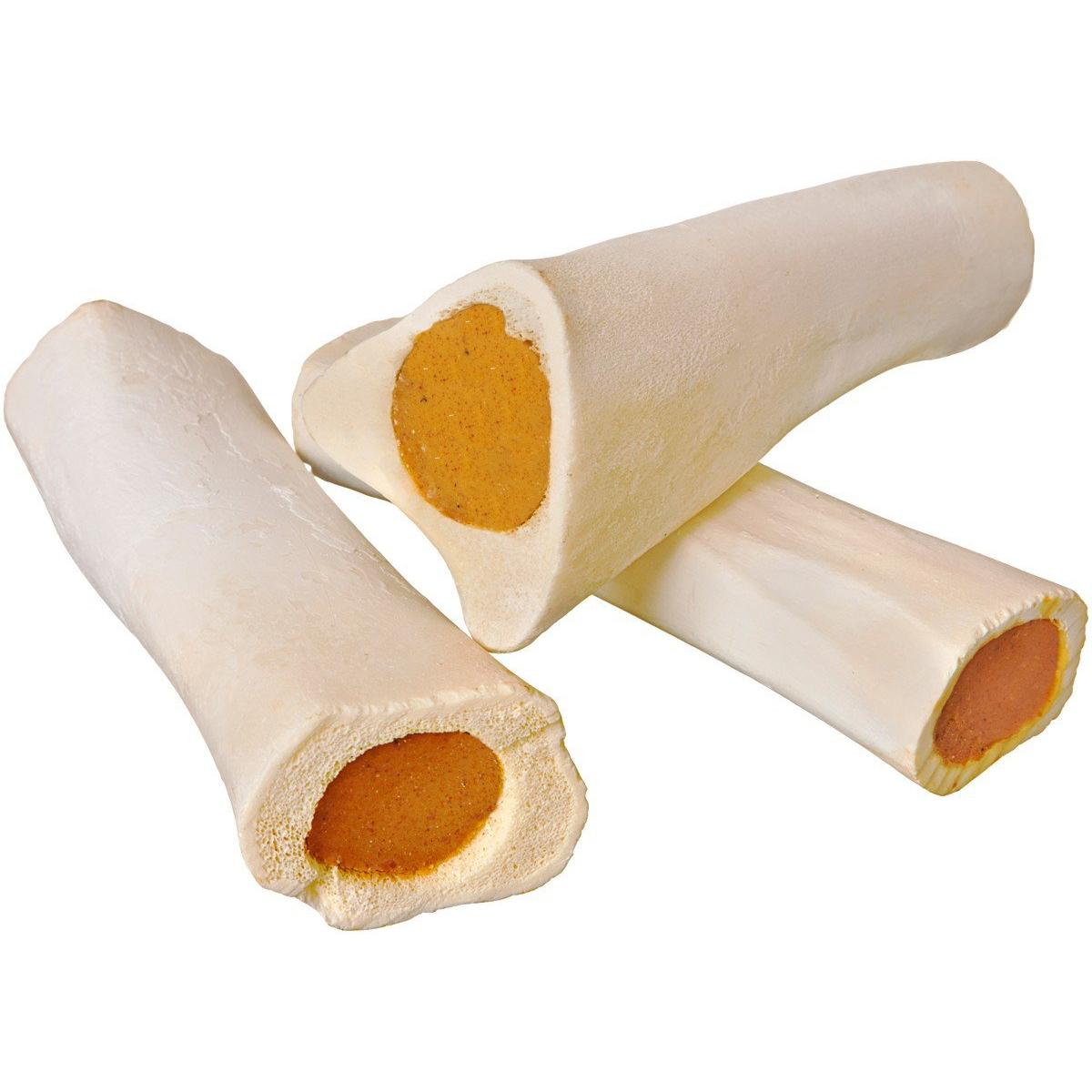 Redbarn's Filled Bones, a natural beef femur bone stuffed with a wide variety of delectable fillings, are a great way to reduce your dog's level of stress and boredom. Redbarn's Filled Bones work to help maintain your dog's dental health by gently scraping harmful plaque.
