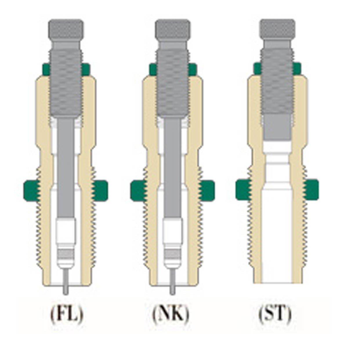 - The neck (NK) resizing die contains a decapping rod assembly with a neck expander (size button).