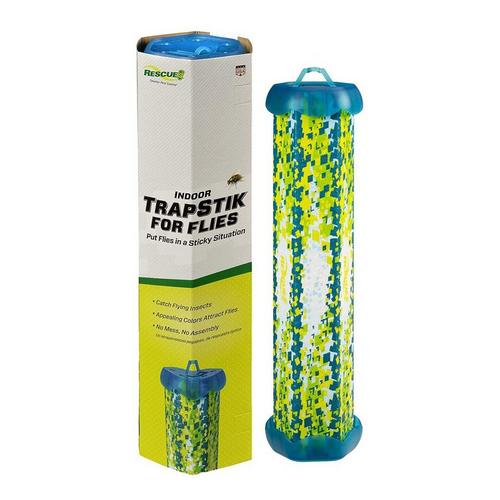 The RESCUE! Trapstik® for Flies catches common species of flies such as house flies cluster flies fruit flies and gnats. The RESCUE! Trapstik® for Flies uses our exclusive VisiLure® technology to lure flies with appealing colors and a multi-dimensional pattern. Flies are attracted by the colors and patterns on The RESCUE! Trapstik® for Flies then get trapped on the adhesive surface. The flies get caught on the sticky surface of The RESCUE! Trapstik® for Flies and eventually expire. Use The RESCUE! Trapstik® for Flies indoors anywhere around the house or garage. It’s best to hang The RESCUE! Trapstik® for Flies right where the fly problem is such as around windows or in mud rooms and covered porches. To use The RESCUE! TrapStik® for Flies tear the perforated strip at left and remove cardboard to expose the adhesive. A hanging loop is built into the cap on The RESCUE! Trapstik® for Flies. Insert index finger through holes to lift and bend up. Hang The RESCUE! Trapstik® for Flies indoors or in sheltered locations. See package for additional instructions for use.