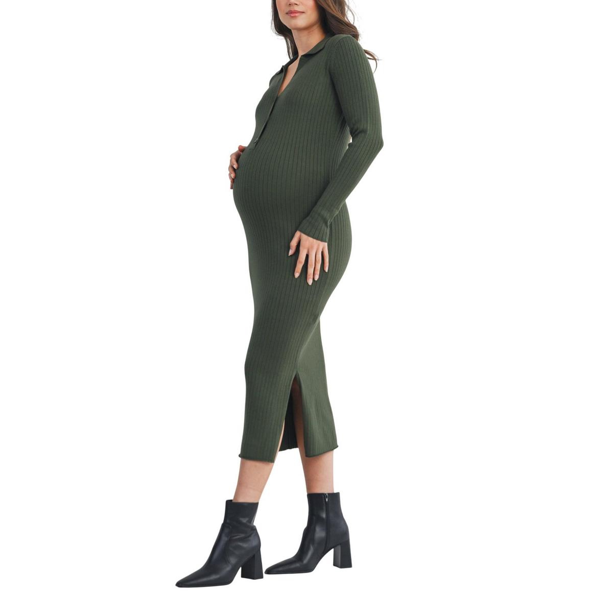 Women's Hello Miz Maternity Ribbed Long Sleeve Midi Dress