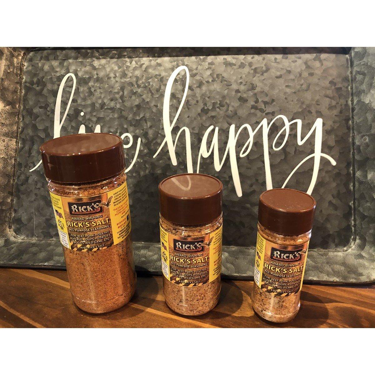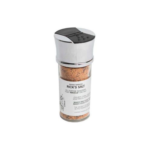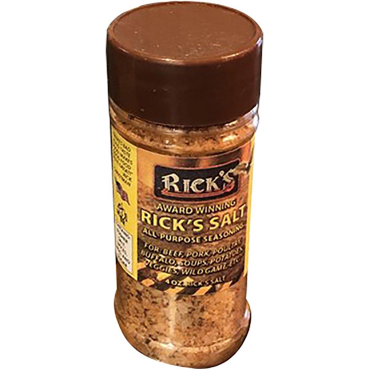 Rick's Salt is made by Rick Christman, known locally as the Chili King, in Mobridge, South Dakota. It's an all purpose blend of kosher salt, spices, msg, and sugar that compliments beef, pork, poultry, wild game or vegetables. Rick's Cafe is lined with the trophies Rick has won for his delicious burgers and famous chili, including People's Choice at the New York City Chili Cook Off.